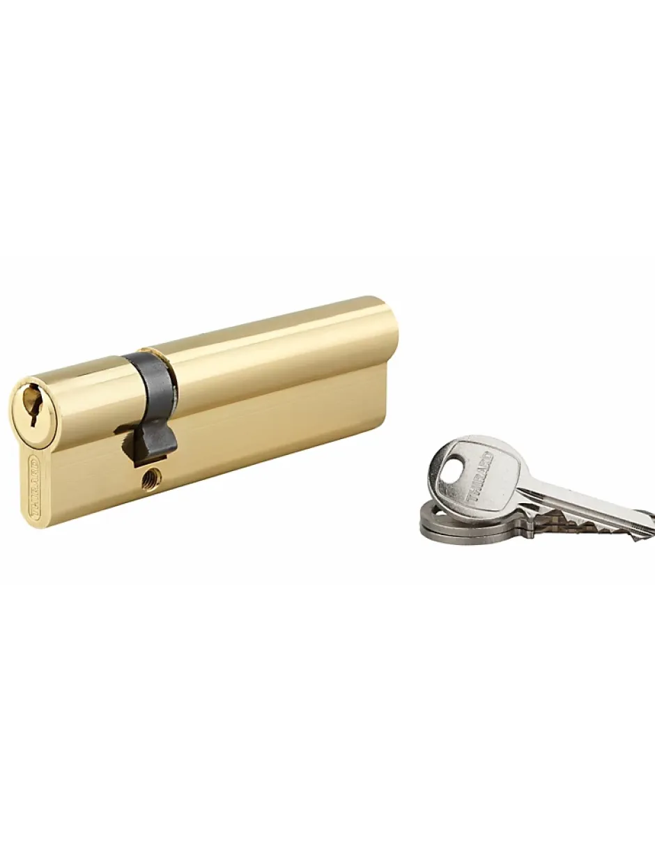 Profil européen laiton. Mécanisme à 5 goupilles. Panneton anti arrachement. 3 clés en acier nickelé.