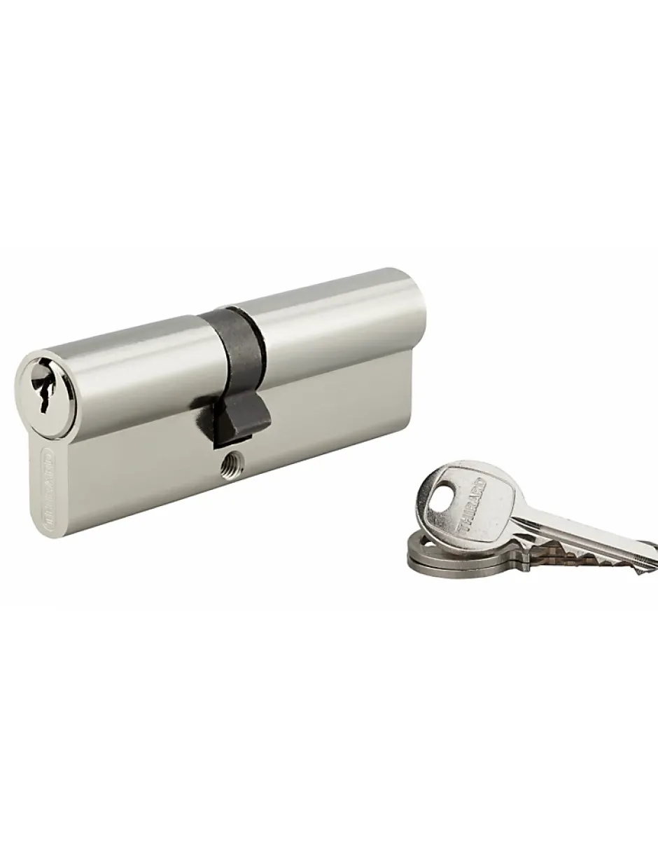 Les points Clés :Cylindre profil européen40x55mm5 goupillesAnti-arrachement3 clés crantées en acier nickeléPour utilisation provisoireGarantie 2 ans