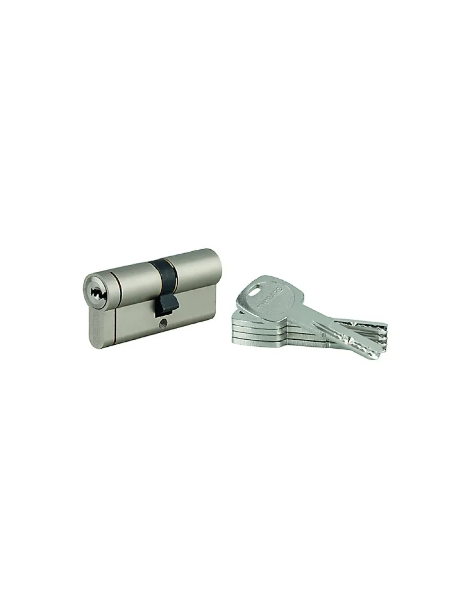 Attention : Ce produit en s’entrouvrant et un produit spécifique. Ces produits s’ouvrent tous avec la même clé si vous commandez plusieurs produits identiques, vous pourrez ouvrir avec une seule et unique clé tous les éléments.Comment obtenir un système clé unique ?Pour obtenir un ensemble de cylindres s’entrouvrant ou système clé unique, il vous suffit de définir les dimensions des cylindres, les spécificités souhaitées et ensuite de commander plusieurs éléments aux spécificités identiques.Exemple :Cylindre de serrure à double entrée Transit 1 , 30x30mm, s’entrouvrant nickel, 5 clés réversiblesCylindre de serrure à double entrée Transit 1, 30x40mm, s’entrouvrant nickel, 5 clés réversiblesComment prendre les mesures de son cylindre ?A l’aide d’une règle ou d’un instrument de mesure, il vous faut mesurer la distance entre le bord de votre porte (intérieur et extérieur) et le milieu du trou de la vis de fixation du cylindre. Il se peut que la distance ne soit pas la même des deux côtés.Dans le cas ou votre porte ait une mesure peu commune et ne convienne à aucun cylindre au millimètre près, il est acceptable de laisser dépasser son cylindre à l’extérieur de 5mm maximum, tolérance de dépassement qui garantit la sécurité de votre cylindreCaractéristiques TechniquesClé ProtégéeOuiDébrayableNonMatièreLaiton nickeléGammeTransit 1Nombre de Clés5Nombre de Goupilles6Niveau de Sécurité8/10PannetonStandardLongueur (en mm)30x35mmTypeCylindre double entréeProfilEuropéen