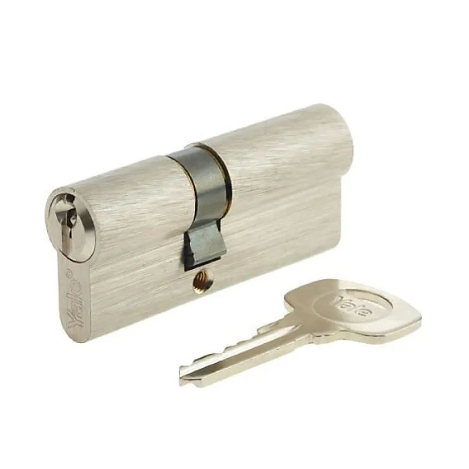 Cylindre Yale YC500+ double entrée 30×40 mm nickelé satin, système à 5 goupilles avec protection anti-crochetage, livré avec 3 clés plates réversibles, compatible profils européens.