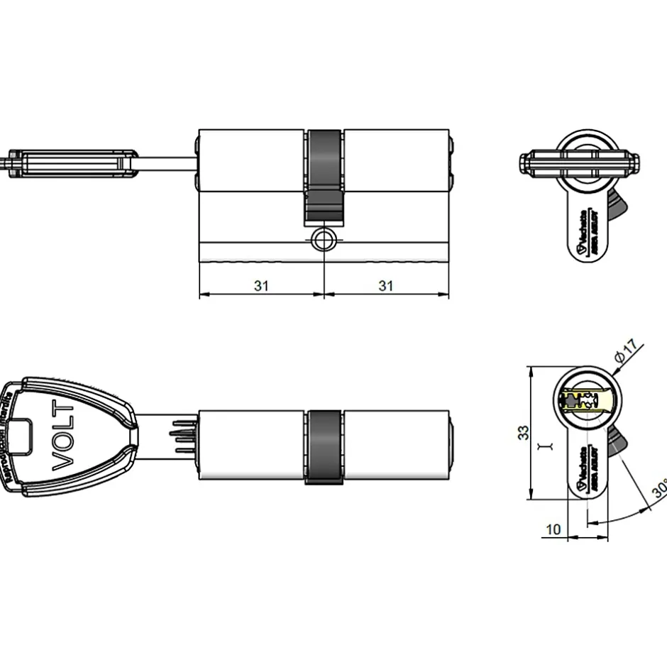 Cylindre Vachette Volt Synkro 30 x 30 mm, 4 clés