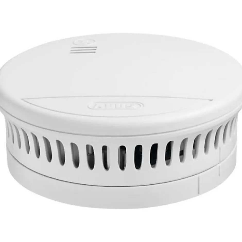 Détecteur de fumée optique ABUS RWM90 avec autonomie 5 ans, adapté pour chambres, chambres d’enfants et couloirs – alarme 85 dBA, pile lithium CR123A incluse et remplaçable, avertissement de pile faible, auto-test régulier avec signal d’erreur, fonction silence 9 minutes, détection jusqu’à 40 m² et conformité EN14604.