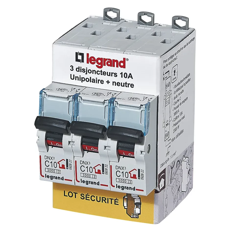 Lot de 3 disjoncteurs DNX3 unipolaire + neutre 10A Legrand