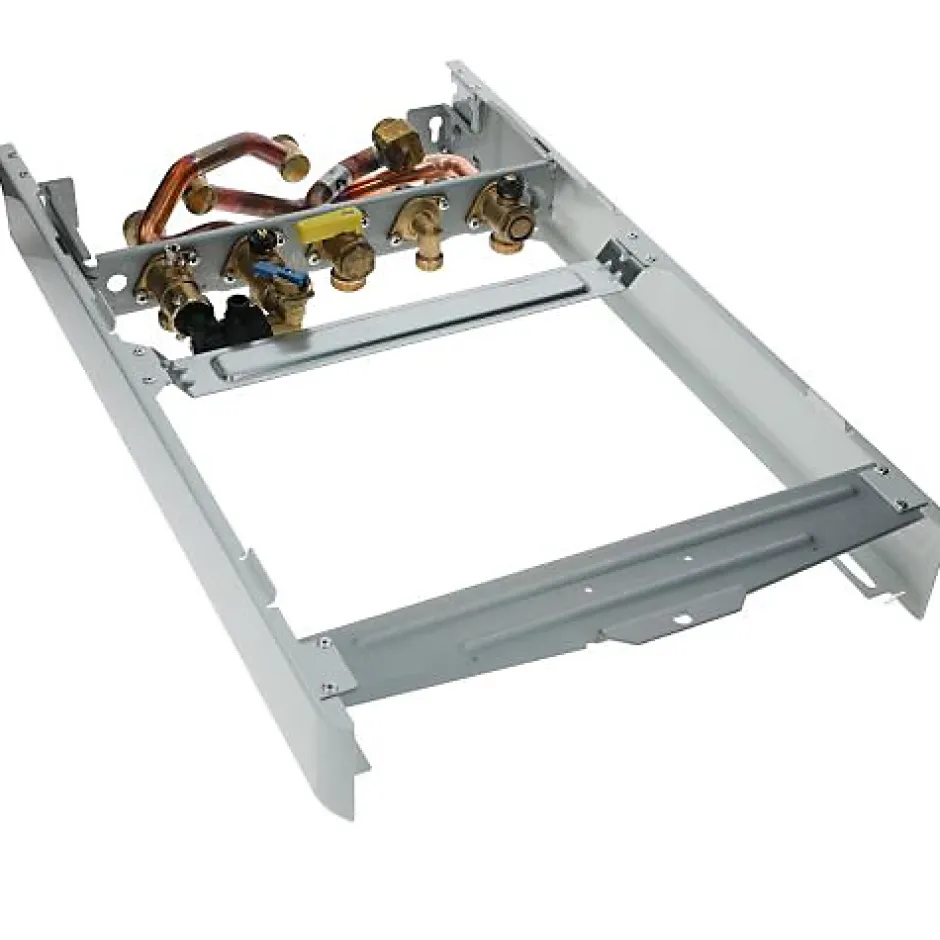 – Dosseret pour chaudière iCondens – Kit de raccordement comprennant un robinet gaz « NF OCSF » selon la NF E 29-135 exclusivement destiné à être installé avec ce kit- N’utiliser que les joints fournis avec ce kit- Installation simplifiée- Réduit les risques d’erreurs- Conception robuste et sûre Dimensions et Poids : – Hauteur: 710 cm- Profondeur/largeur: 370 cm- Longueur: 340 cm- Poids: 7 kg Autres données :- Diamètre raccordement entrée/sortie chauffage: 20 mm- Diamètre raccordement entrée/sortie ECS (Eau Chaude Sanitaire- eau froide): 14 mm- Diamètre raccordement Gaz: 18 mm Serrage écrous : – DN12 / G1/2 /30Nm- DN15/G3/4 / 30Nm- DN20/G1/40Nm Utiliser des vis et chevilles adaptées aux caractéristiques du mur porteur et au poids de l’appareil. Garantie: 2 ans contre vices de fabrication, hors pièces d’usure. Rappel : La maintenance doit être exécutée par un professionnel qualifié.