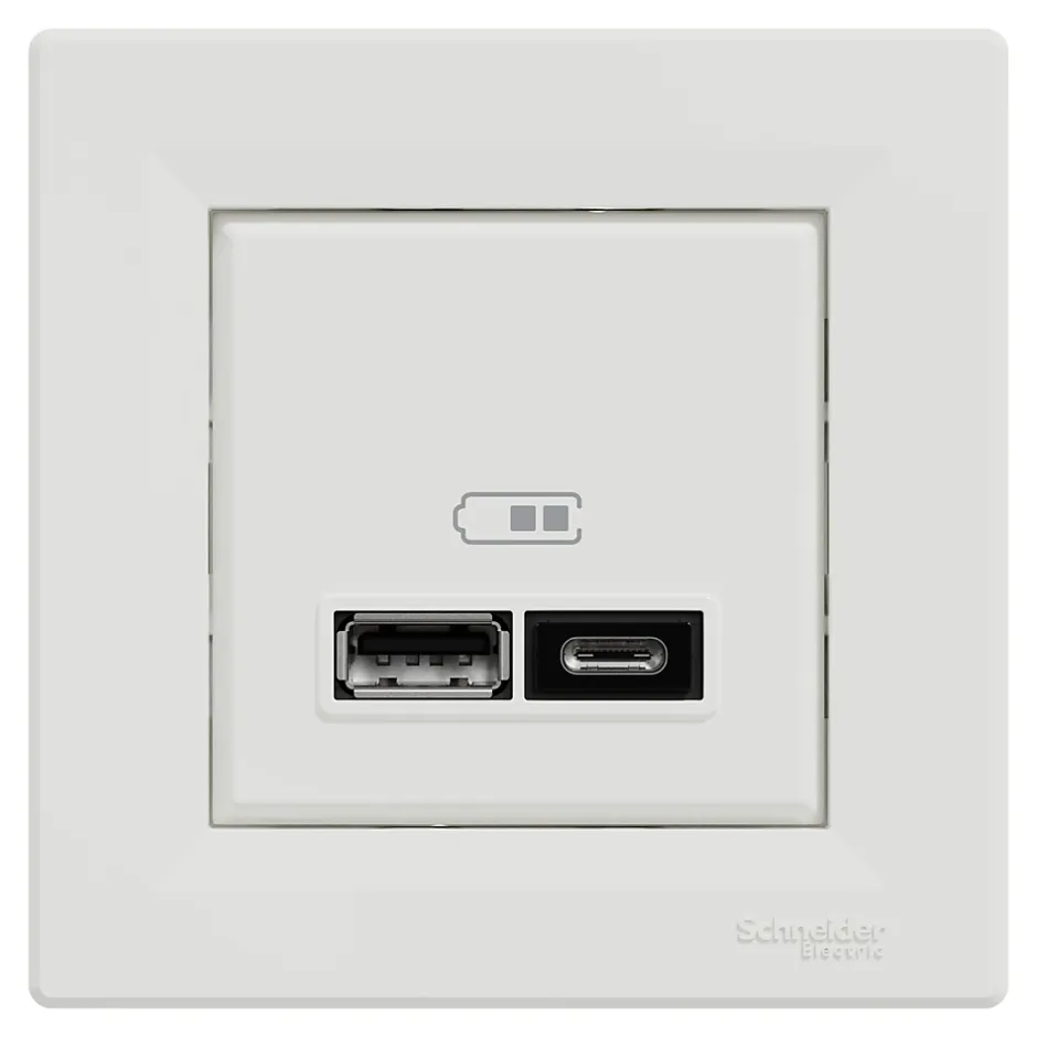 Double chargeur usb A + C complet Schneider Electric Asfora blanc