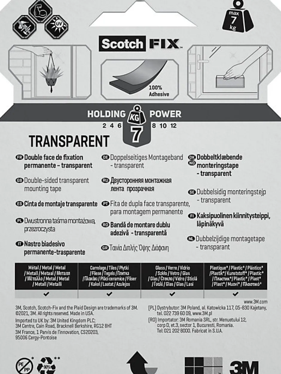 Double face 3M 19 mm x 5 m transparent, 7 kg