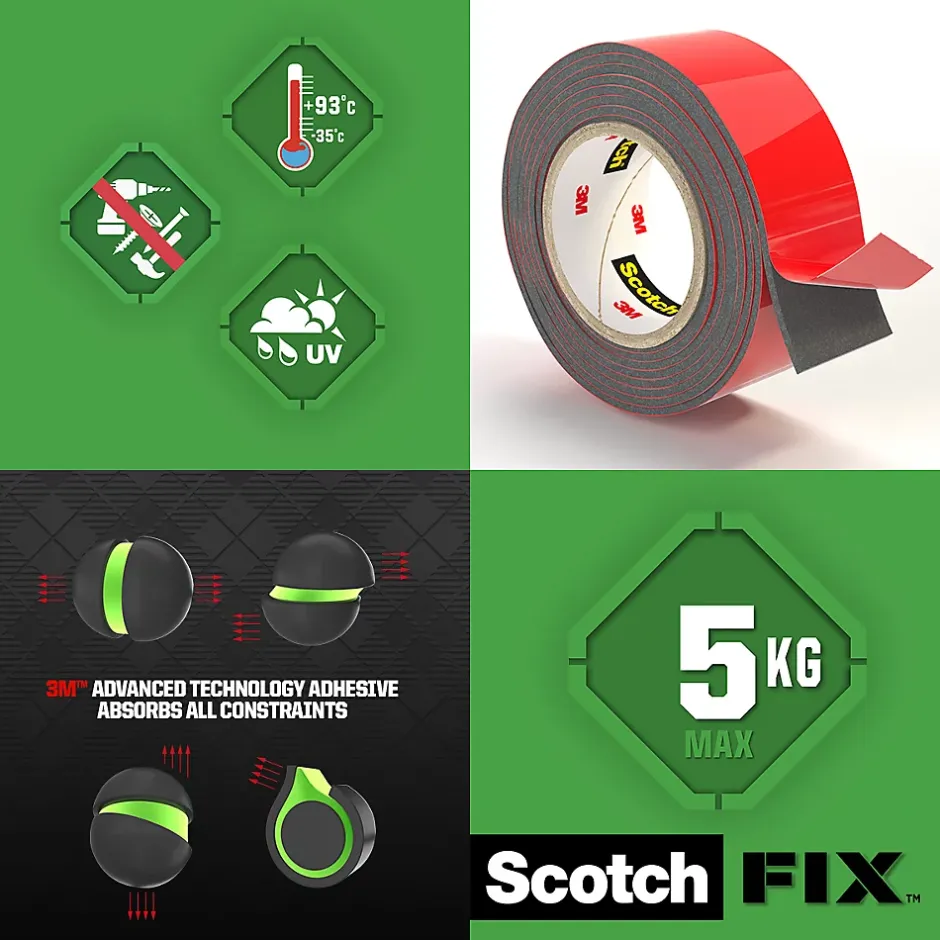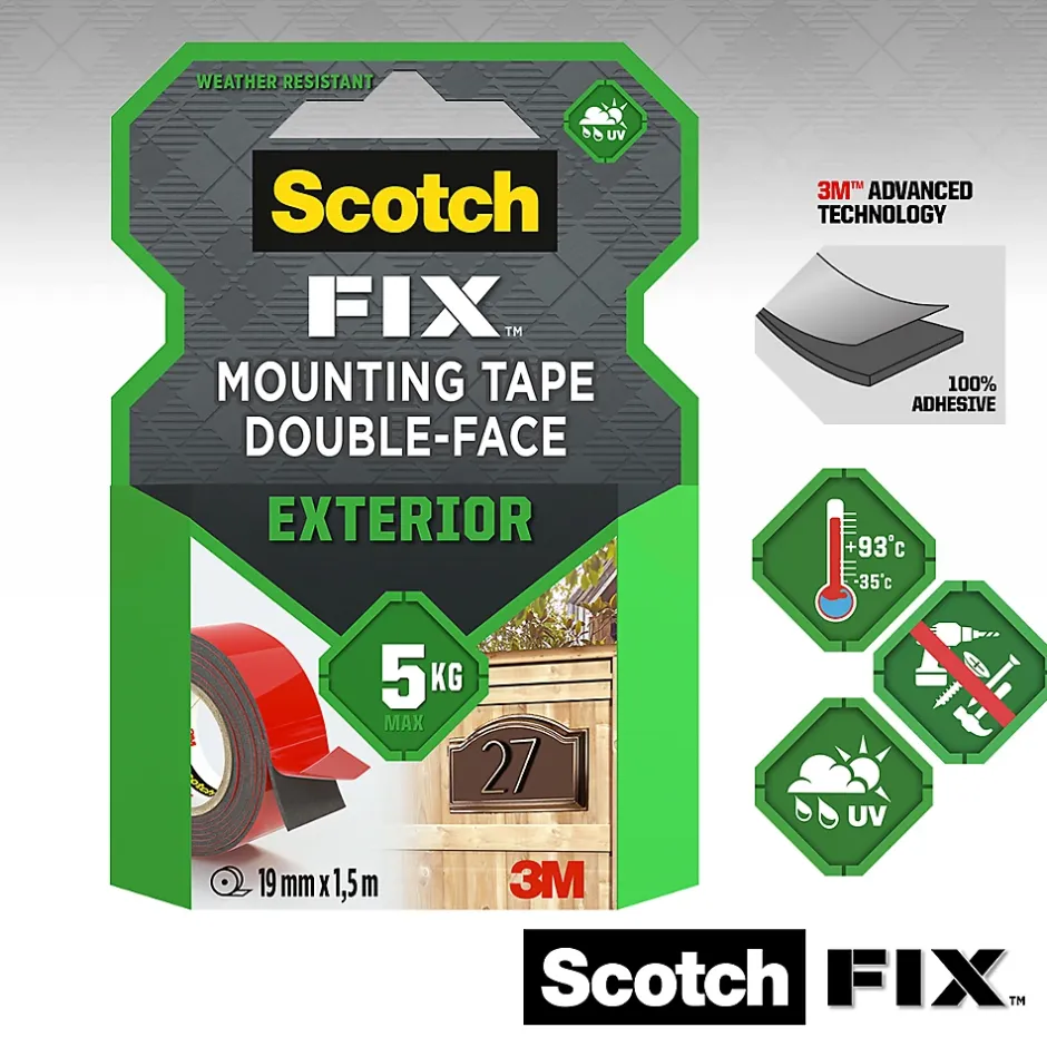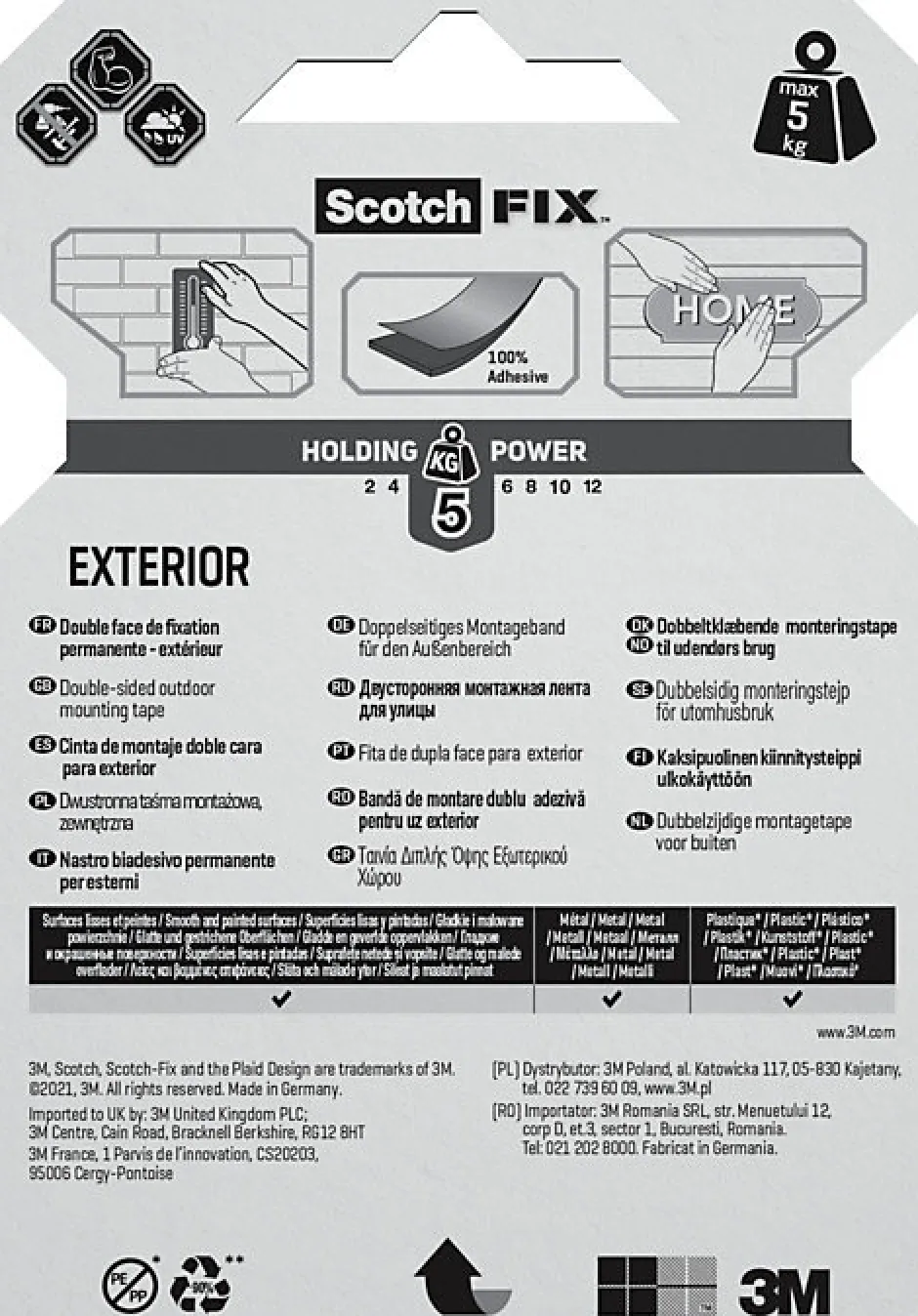 Rapide et pratique, Fixation forte en extérieur, Résiste aux intempéries, Résiste aux U.V., Bricoler sans outil et sans percer