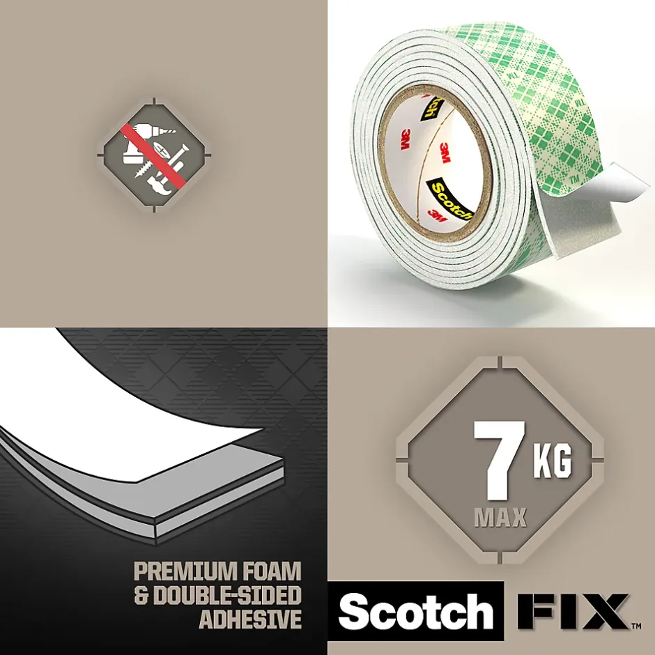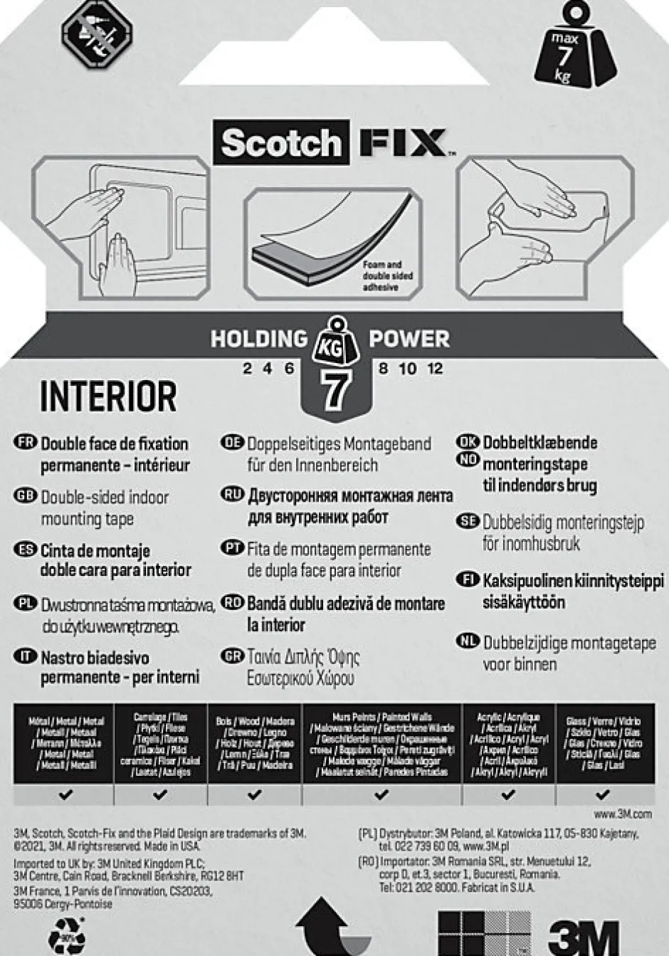 Double face intérieur 3M 19 mm x 1.5 m blanc, 7 kg