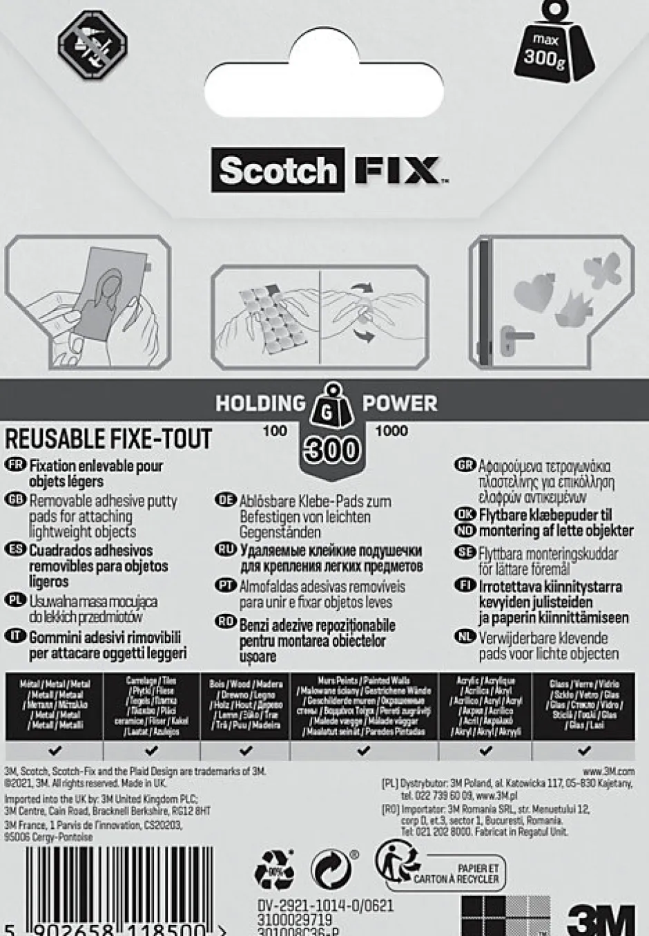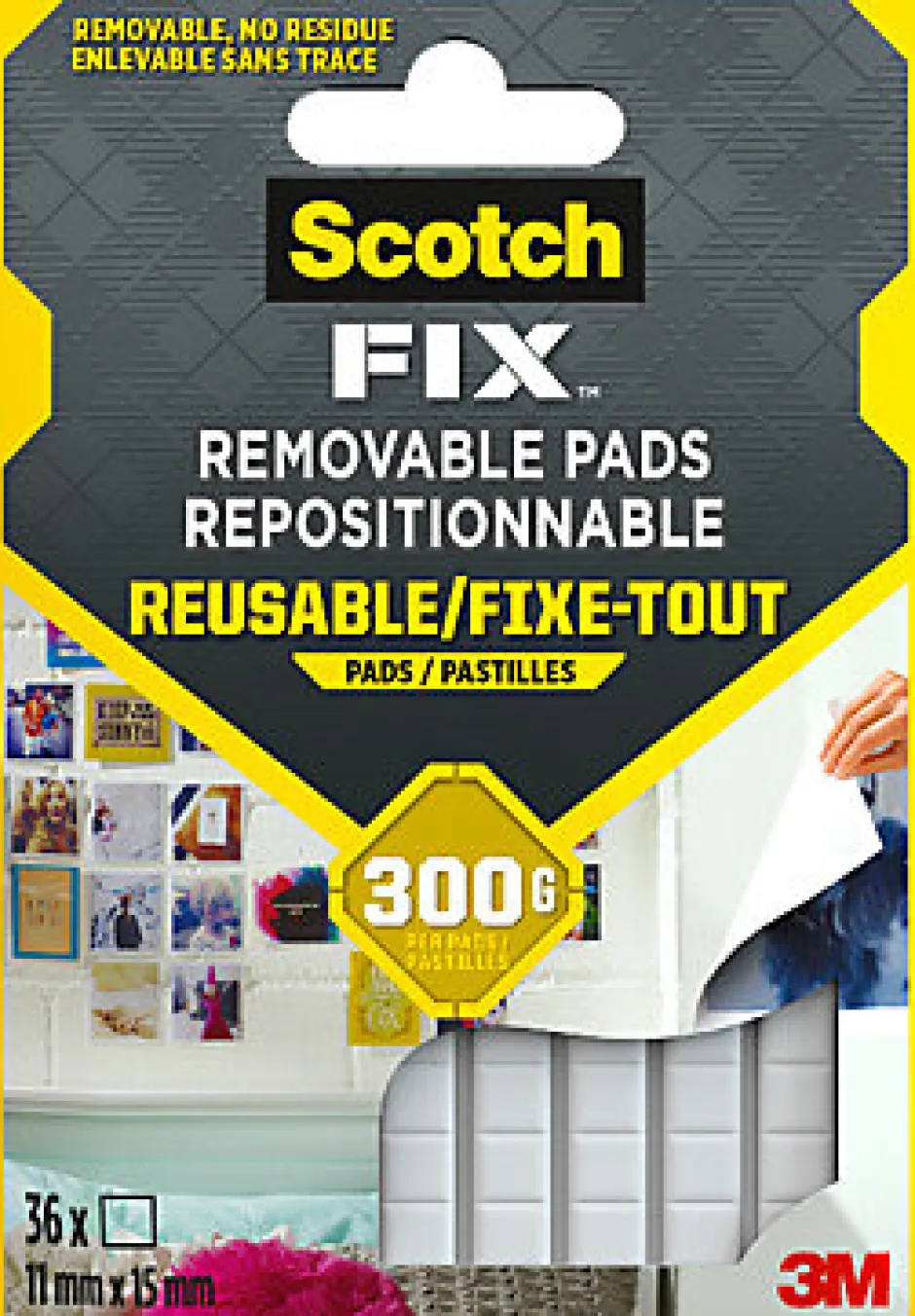 Double face repositionnable 3M 11 x 15 mm blanc, 36 carrés 300 g