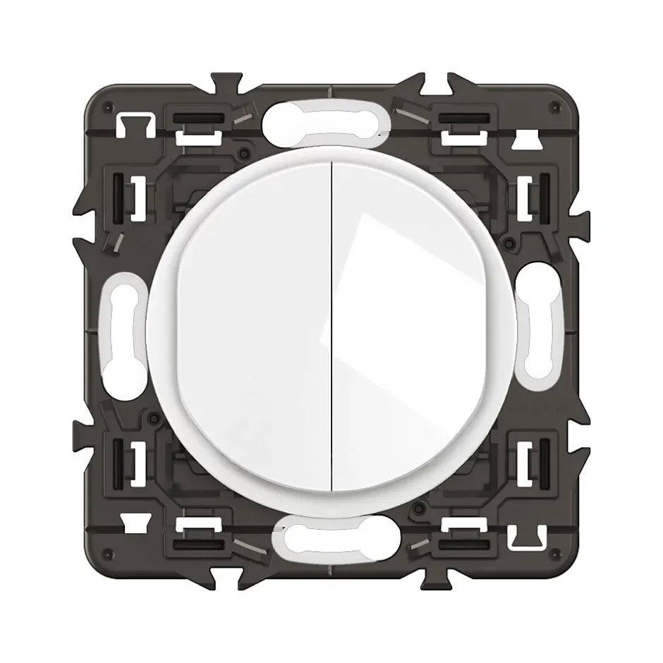 Double interrupteur ou va-et-vient Céliane 10AX à bornes automatiques – livré avec enjoliveur Blanc et support montés, à équiper d’une plaque de finition