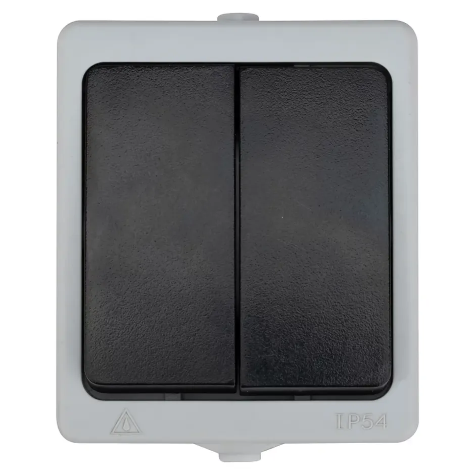 Double interrupteur va-et-vient étanche en saillie gris complet