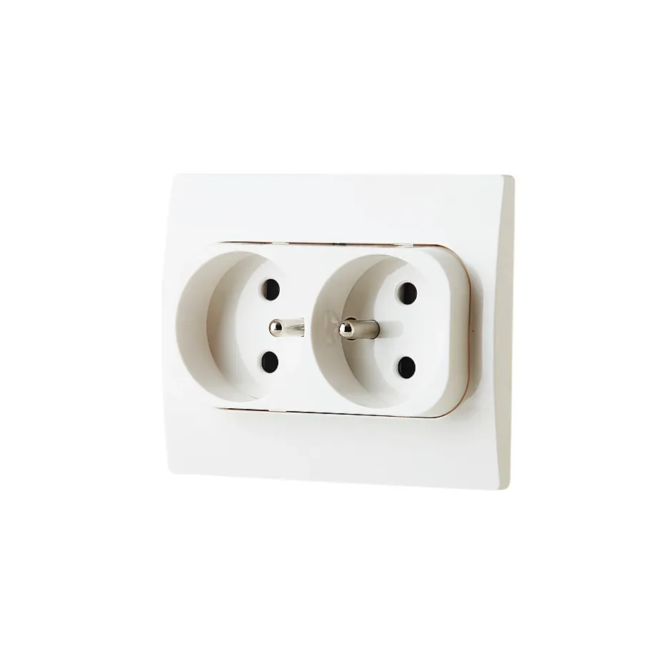 Branchez en toute sécurité jusqu’à deux appareils électriques avec cette double prise encastrable 2 pôles + terre OPP, peu encombrante. Installation facile à l’aide de griffes ou de vis.