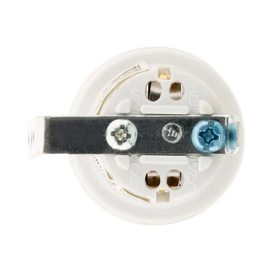 Douille E27 en résine de synthèse sans bague pour montage sur votre luminaire avec fixation par étrier, également appelé équerre. Fonctionne en 4A – 250V~ Douille E27 Résine avec patte équerre