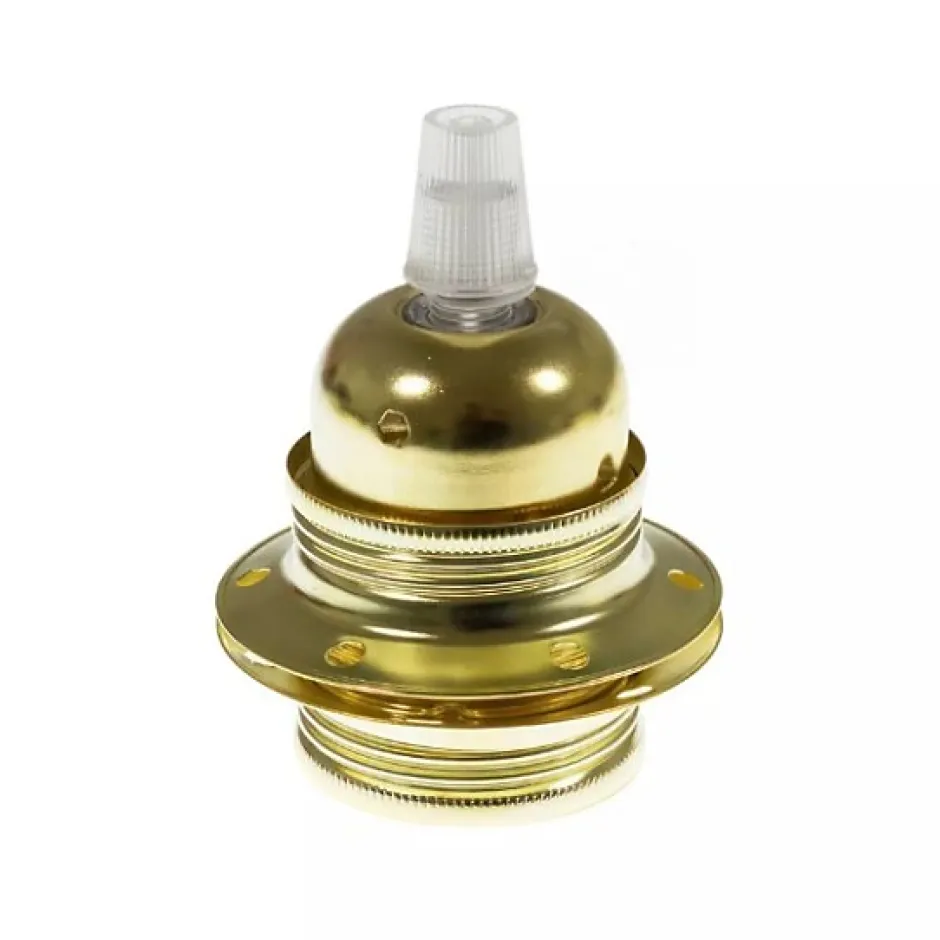 Créez des Luminaires Uniques avec la Douille Laiton E27 – Prête à l’emploiLa douille en métal avec une finition laiton, pour culot E27, est une solution polyvalente pour les passionnés de création luminaire. Prête à l’emploi, elle est fournie avec un serre-câble et deux anneaux de serrage pour fixer un abat-jour.Sa compatibilité avec les câbles revêtus textile 2 fils permet une association harmonieuse avec une variété de styles et de designs. Que ce soit pour la création de luminaires personnalisés ou la rénovation de luminaires existants, cette douille offre une grande liberté de conception.Avec une température maximale de 230 degrés et une capacité de courant jusqu’à 4A, elle garantit sécurité et fiabilité. Fabriquée en acier cuivré et alimentée sur 2 bornes, elle assure une fixation solide.Exprimez votre créativité et donnez vie à vos idées lumineuses avec cette douille E27 !