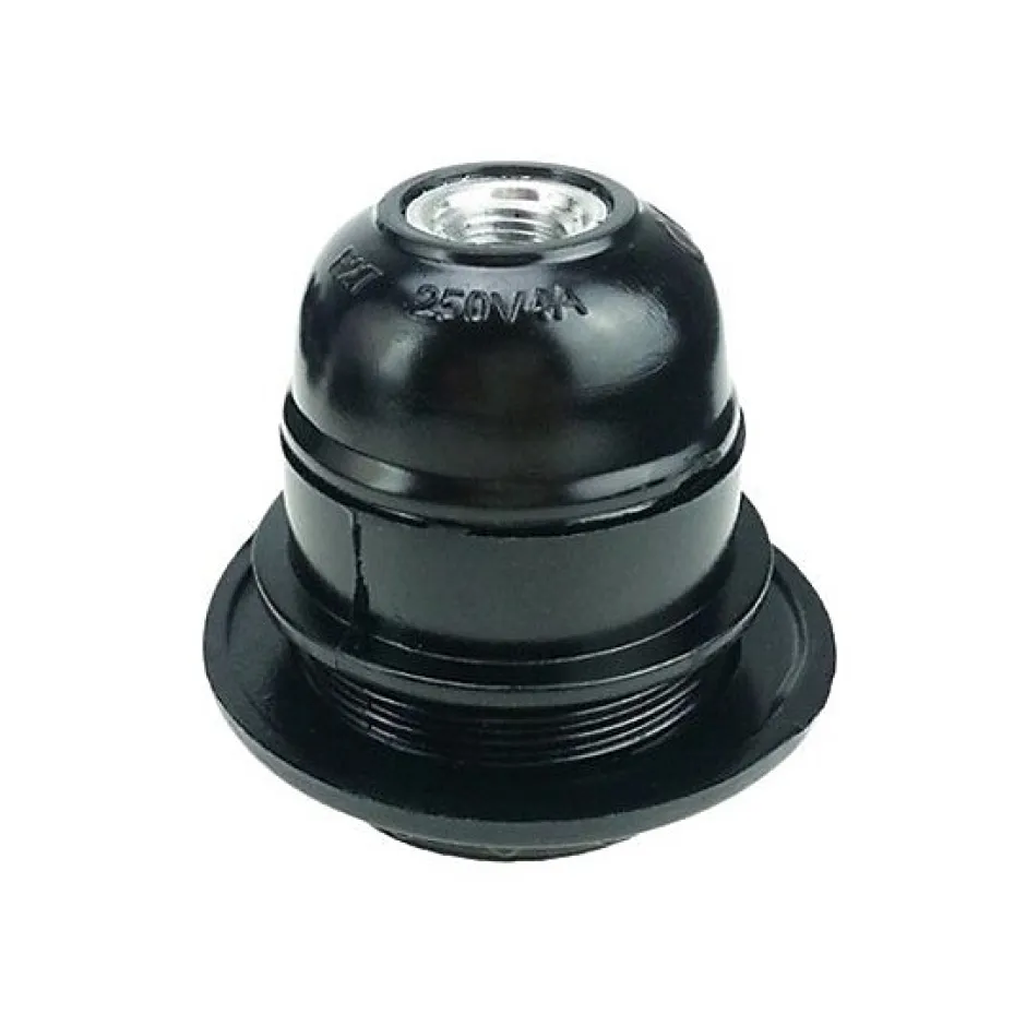 Créez des Luminaires Uniques avec la Douille Noir Bakélite E27 – Prête à l’emploiLa douille en bakélite pour culot E27, est une solution polyvalente pour les passionnés de création luminaire. Prête à l’emploi, elle est fournie avec un anneau de serrage pour fixer un abat-jour.Sa compatibilité avec les câbles revêtus textile 2 fils permet une association harmonieuse avec une variété de styles et de designs. Que ce soit pour la création de luminaires personnalisés ou la rénovation de luminaires existants, cette douille offre une grande liberté de conception.Avec une température maximale de 210 degrés et une capacité de courant jusqu’à 4A, elle garantit sécurité et fiabilité. Fabriquée en bakélite et alimentée sur 2 bornes (phase, neutre), elle assure une fixation solide, grâce au pas de vis M10Exprimez votre créativité et donnez vie à vos idées lumineuses avec cette douille E27 !