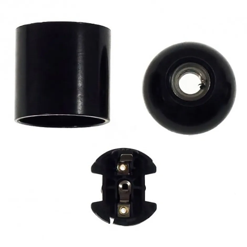 Douille E27 noire Bakélite à Chemise Lisse : Style Rétro et Qualité ModerneLa douille E27 en bakélite à chemise lisse allie un design rétro intemporel à des fonctionnalités modernes. gamme d’ampoules et d’applications d’éclairage domestique et commercial.Avec sa conception en trois pièces pour une installation facile et sa capacité à résister aux conditions les plus exigeantes, cette douille E27 noire bakélite à chemise lisse est non seulement esthétique mais également pratique et fiable pour une variété d’utilisations d’éclairage, ajoutant une touche de style vintage à tout espace tout en garantissant des performances durables et sûres.