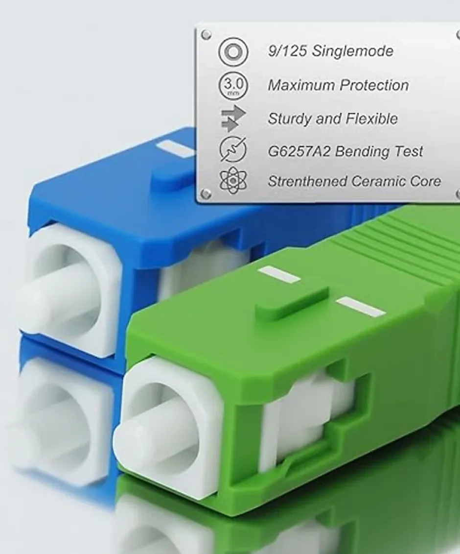 Description généraleCe cordon fibre optique monomode SC/APC vers SC/UPC est conçu pour offrir une transmission stable et sécurisée dans les réseaux FTTH, télécoms et data centers. Doté d’une gaine LSZH (Low Smoke Zero Halogen), il garantit une installation fiable même dans les environnements les plus sensibles. Facile à déployer et prêt à l’emploi, ce câble est idéal pour les connexions critiques.Spécifications techniquesType de fibre : Monomode OS2 G.657.A2Connecteurs : SC/APC (angle 8°) vers SC/UPCDiamètre : 2,0 mmRayon de courbure minimum : 7,5 mmPerte d’insertion (IL) : ≤ 0.2 dBPerte de retour (RL) : ≥ 60 dB (APC)Longueur d’onde : 1310 nm / 1550 nmMatériau de gaine : LSZHLongueurs disponibles : au choix selon l’installationCompatibilité et accessoiresUtilisation recommandée : FTTH, panneaux de brassage, boîtiérs optiques, équipements télécomsCompatible avec les réseaux monomode standard (G.657.A2)InstallationPrêt à l’emploi, ce cordon optique peut être directement inséré dans les ports SC des équipements. Sa souplesse et sa construction fine permettent un déploiement rapide, même en espace confiné.UtilisationRecommandé pour les installations intérieures en milieux professionnels ou sensibles (hôpitaux, data centers, immeubles). Assure une connectivité fibre stable, durable et conforme aux normes internationales.Autres informationsChaque cordon est testé pour une conformité optique maximale. La gaine LSZH limite les risques en cas d’incendie et les connecteurs céramiques assurent une performance constante.Images du produit