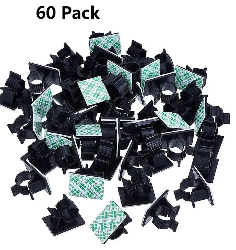 Description généraleLot de 60 clips de fixation pour câbles avec adhésif puissant, spécialement conçus pour organiser les câbles fibre optique, USB, téléphoniques, audio ou d’alimentation à la maison, au bureau ou sur les lieux de travail.Ces clips muraux autocollants permettent une gestion propre des câbles et une installation facile sans outils sur différentes surfaces telles que le bois, le plastique, le verre, le métal ou les murs peints.Caractéristiques techniques Marque : Elfcam Contenu : Lot de 60 pièces Dimensions du produit : 3 mm x 67 mm Poids : 60 g Couleur : Noir Nombre de pièces : 60 Fabricant : Zhuhai Anbaoshi Technology Largeur de câble compatible : jusqu’à 6 mmCompatibilité et applications Compatibles avec : câbles fibre optique, câbles USB (USB A/B, USB 2.0, Type C, Lightning), câbles téléphoniques ADSL, câbles d’imprimante, câbles audio numériques, câbles audio, câbles d’alimentation Diamètre de câble pris en charge : de 0,5 mm à 6,0 mm Utilisation possible : maison, bureau, voiture, centres multimédia, installations réseauInstallationIl suffit de retirer le film protecteur et de coller le clip sur la surface souhaitée. Aucun outil requis. Pour les câbles plus épais (diamètre > 3 mm) ou multiples, la barre intérieure peut être découpée pour offrir plus d’espace.UtilisationIdéal pour une gestion discrète et efficace des câbles dans les environnements domestiques ou professionnels. Permet de maintenir les câbles bien rangés et améliore l’esthétique générale de l’espace.Autres informationsGarantie fabricant : 5 ans. Service client Elfcam disponible 24h/24 et 7j/7 en France. Produit fiable, durable et facile à utiliser, certifié CE.Images du produit