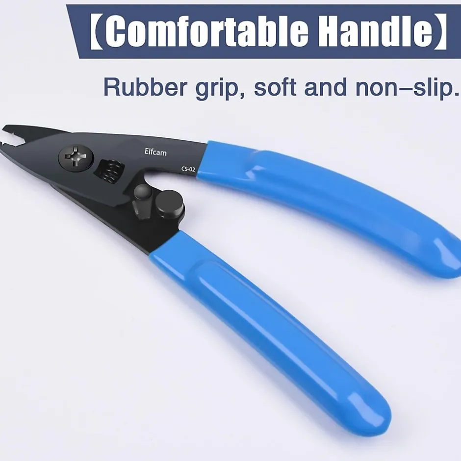 Description généraleLa pince à dénuder fibre optique Elfcam 3 coupes est spécialement conçue pour décaper les gaines optiques de 2 à 4 mm jusqu’à la fibre nue 125 μm. Elle prend en charge les fibres monomode 9/125 µm et multimode 50/125 et 62,5/125 µm.Dotée d’une structure en acier au carbone durable, d’un verrouillage de sécurité, d’une vis de réglage et d’une clé Allen, elle offre un dénudage précis et sûr. Sa poignée ergonomique assure un confort d’utilisation optimal pour les techniciens réseau.Spécifications techniques Type : pince à dénuder 3 fentes (125μm / 250μm / 600-900μm) Plages de dénudage : 4.0 mm à 900 µm 900 µm à 250 µm 250 µm à 125 µm (fibre nue) Compatibilité fibre : 9/125 µm (SM), 50/125 µm, 62.5/125 µm (MM) Matériau : acier au carbone + poignées isolées Accessoires : vis de réglage + clé Allen Sécurité : verrouillage de lame intégréCompatibilité et applications Compatible avec : fibres monomode et multimode OS2, OM1, OM2 Applications : installation FTTH, FTTB, LAN, maintenance télécom, data centersInstallationChoisissez la fente adaptée selon la gaine fibre à retirer. Insérez la fibre jusqu’à la butée, fermez la pince et tirez doucement pour décaper la gaine sans endommager la fibre centrale.UtilisationIdéal pour les travaux de fusion, de raccordement ou d’inspection dans les réseaux optiques. Cette pince permet un dénudage propre et sécurisé, étape essentielle avant l’épissure ou le raccordement.Autres informationsFabriquée avec précision, cette pince Elfcam est un outil professionnel fiable. Elle convient aussi bien aux techniciens itinérants qu’aux installateurs de réseaux FTTH.Images du produit