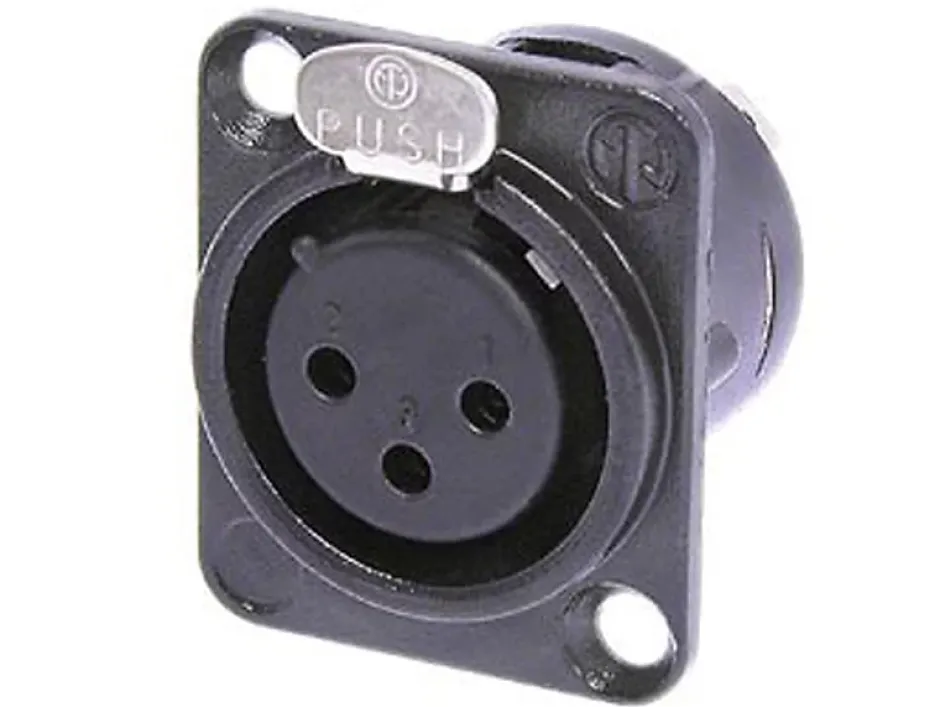 Connecteur femelle a 3 points. Corps nickele et contacts argentes.