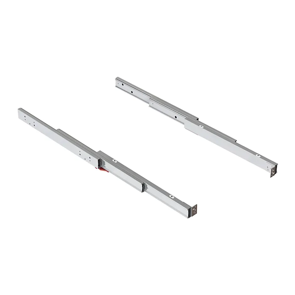 Système permettant d’obtenir une surface ou une table d’appoint dans une cuisine, de 490 mm de long.Compatible avec les modules d’une largeur de 450 à 1 200 mm, profondeur minimale de 560 mm et capacité de charge de 80 kg.Ces guides ont un système de verrouillage pour empêcher la fermeture accidentelle.Vis et notice de montage fournies.Les profils formant les guides sont en aluminium extrudé et anodisé finition inox. VOIR LES MESURES DU PRODUIT DANS LES IMAGES. Le système Shot est conçu pour avoir une table ou une surface de travail supplémentaire pour la cuisine. Très utile pour préparer les repas ou pour profiter d’un apéritif, le système Shot s’ouvre et se ferme en un seul mouvement, de plus, il est également caché dans le même module et occupe l’espace d’un tiroir.Le système doit être installé dans des modules d’une largeur comprise entre 450 et 1 200 mm et avec une profondeur minimale de 560 mm. Le système de guidage permet l’extraction d’une surface de 490 mm et une capacité de charge de 80 kg. Il dispose également d’un mécanisme de verrouillage de sécurité pour empêcher la fermeture accidentelle de la table. Le panneau constituant la surface de support n’est pas fourni.