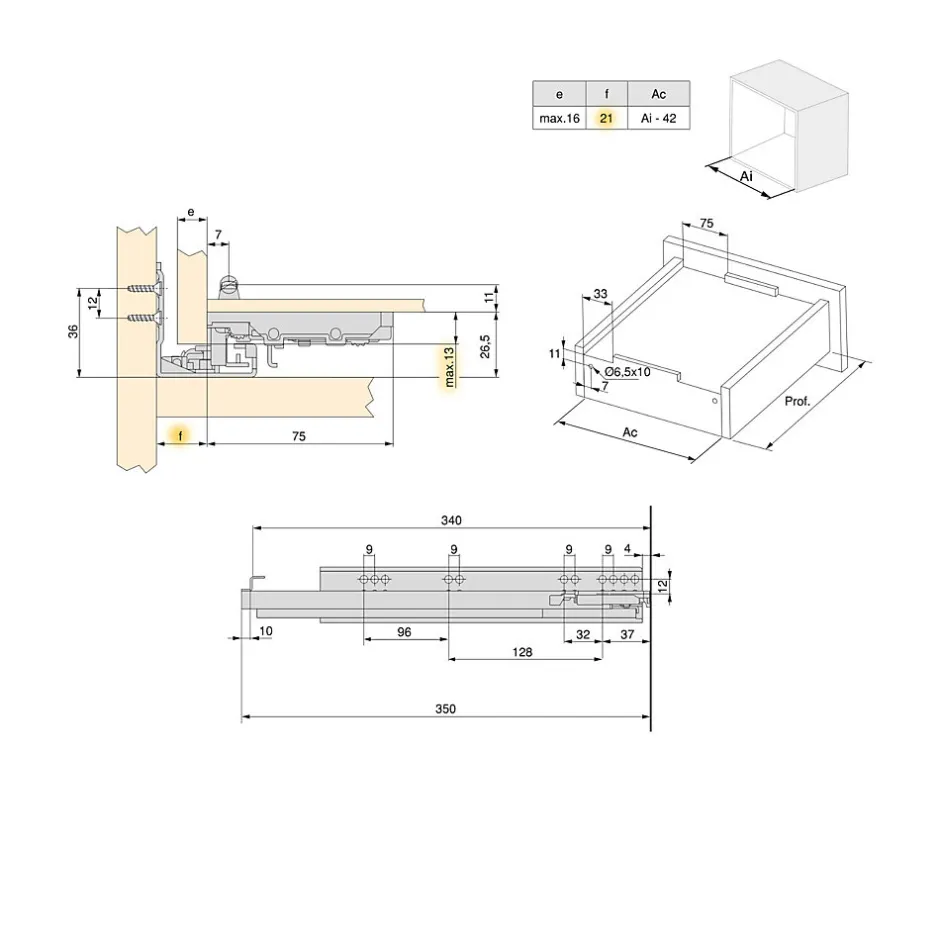 Coulisses synchronisés à sortie totale pour tiroirs de profondeur 340 mm. Conçues pour les meubles de la maison. Leur crochet facilite le montage/démontage rapide du tiroir aux coulisses.Réglage dans trois directions, vertical +2,5 mm, horizontal ± 1,5 mm et profondeur -1/+2 mm.Elles disposent d’auto-fermeture et de piston amortisseur sur les deux coulisses, pour une fermeture en douceur du tiroir.Charge maximum 30 kg. Vendues par paire.Glissement sur galets de delrin qui permettent le coulissage horizontal et vertical. VOIR LES MESURES DU PRODUIT DANS LES IMAGES. Coulisses invisibles à sortie totale pour tiroir Silver avec la plus haute qualité et le meilleur fonctionnement. Elles disposent d’auto-fermeture et de piston amortisseur sur les deux coulisses, pour une fermeture en douceur du tiroir. Leur crochet facilite le montage/démontage rapide du tiroir aux coulisses.