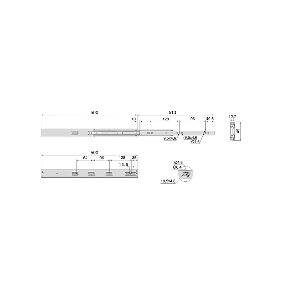 Coulisses à roulements à billes et sortie totale du tiroir. Fabriquées en acier zingué. Hauteur 45 mm. Longueur 500 mm. Charge maximum par jeu 35 kg. Vendues par paire. Avec piston amortisseur sur les deux coulisses pour une fermeture en douceur du tiroir. Avec gâchette pour le démontage de la coulisse. VOIR LES MESURES DU PRODUIT DANS LES IMAGES. Coulisses à sortie totale pour tiroirs à fermeture amortie, dont les billes de haute qualité permettent un glissement doux et silencieux. Elles sont dôtées également d’une grande capacité de charge, pouvant supporter jusqu’à 35 kg par tiroir. Montage au moyen de vis et démontage avec la gâchette située sur la coulisse-même.