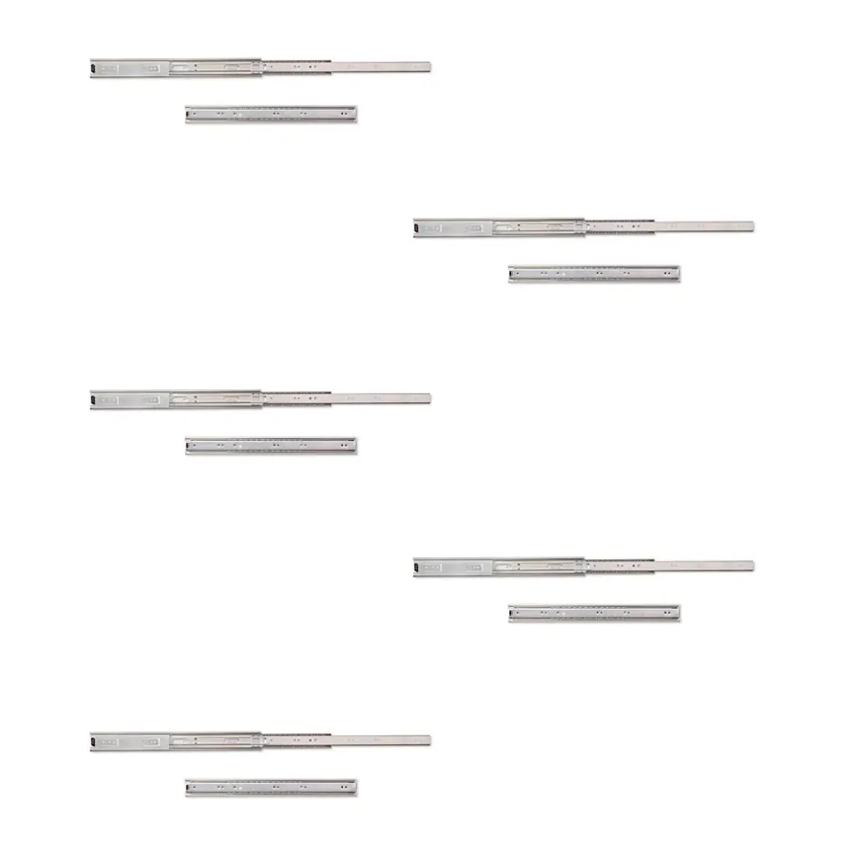 - Lot de 5 jeux de coulisses à billes pour tiroirs à sortie totale.