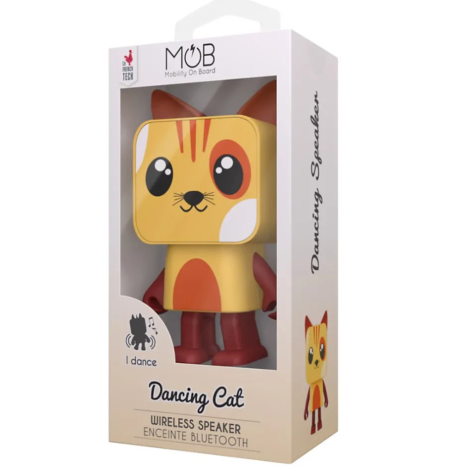 L’enceinte bluetooth dansante Chat de Mobility On Board est dotée d’un son puissant et d’un design plus qu’original.Apportez une touche de fun sur vos bureaux et sur vos étagères avec cette enceinte Bluetooth dancing animal qui a le rythme dans la peau. Petite baffle dansante qui se déhanche au rythme de la musique diffusée. Cette enceinte fonctionne en Bluetooth et se recharge avec un câble Micro-USB fourni. Le mode « danseur » peut se désactiver grâce à un bouton dédié. L’enceinte est autonome pour 4 à 5 heures non stop.Cette enceinte Bluetooth dancing est déclinée en plusieurs animaux plus irrésistibles les uns que les autres ! Licorne, panda, ours, lama, hibou, renard ou chien peuvent même bouger en duo grâce à la fonction stéréo..Connexion sans-fil Bluetooth : 4.2Puissance 3WMode danse : rapide et normalMode stéréo : connecter deux enceintes ensembleKit mains-libres intégré Autonomie en fonctionnement : 4 à 5hAutonomie en veille : environ 10hDurée de charge : environ 2.5hDimensions : 66 x 42 x 93mm.