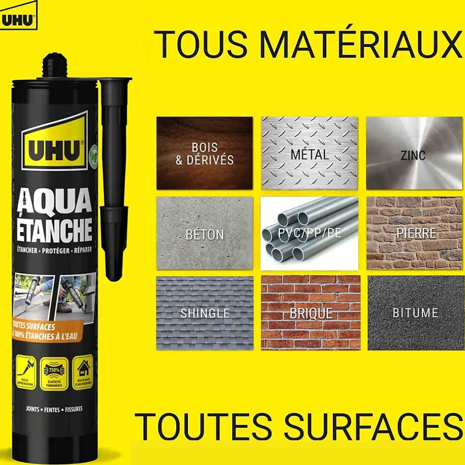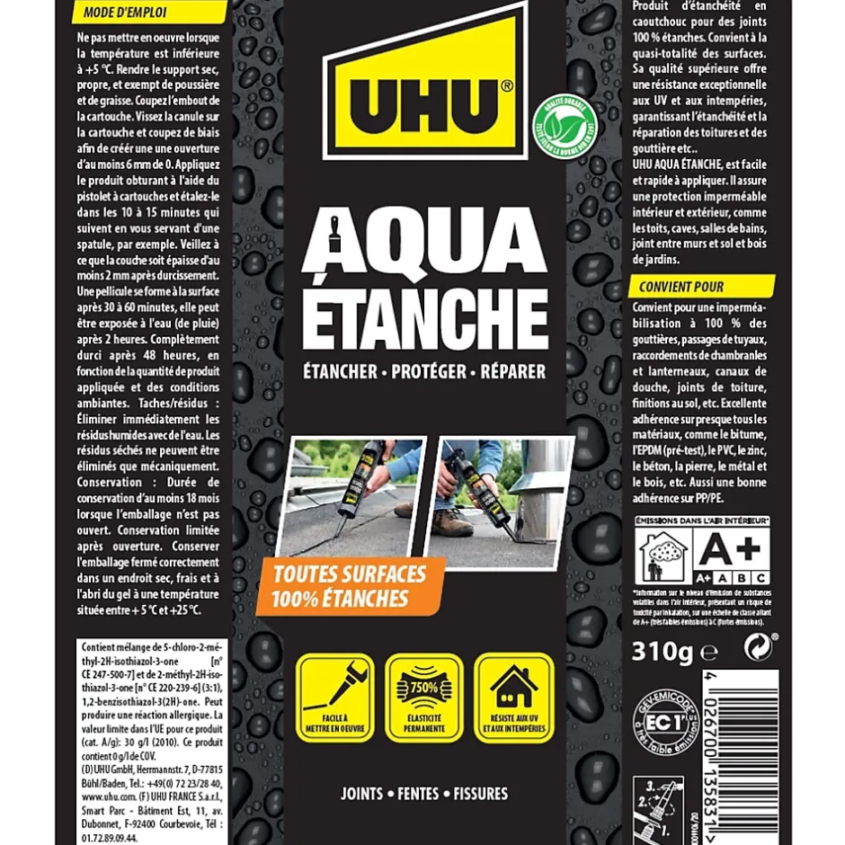 Réparez et protégez vos surfaces avec précision grâce à UHU Aqua Étanche noir en cartouche 310 g : un enduit liquide prêt à l’emploi, sans solvant, qui assure une étanchéité durable contre l’eau, l’air, le gel et les UV. Idéal pour joints, fissures et zones ciblées.