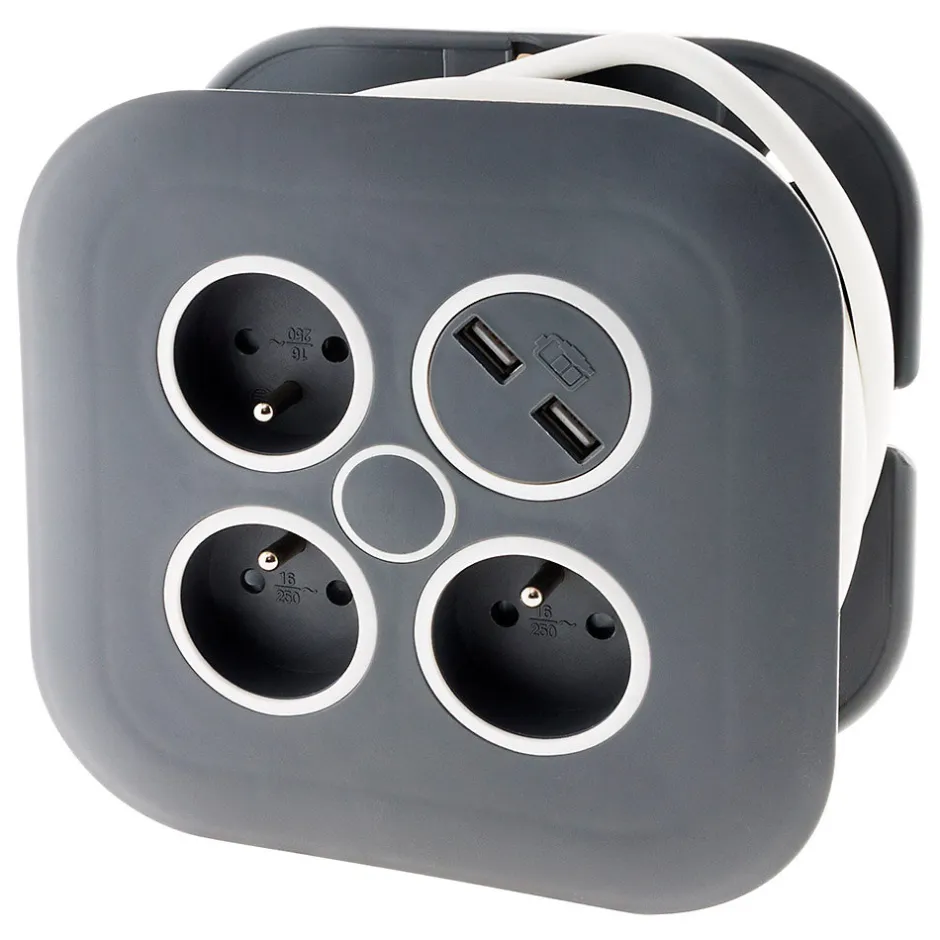 - 3 prises 16A + 2 ports USB 2,1A pour tous vos appareils