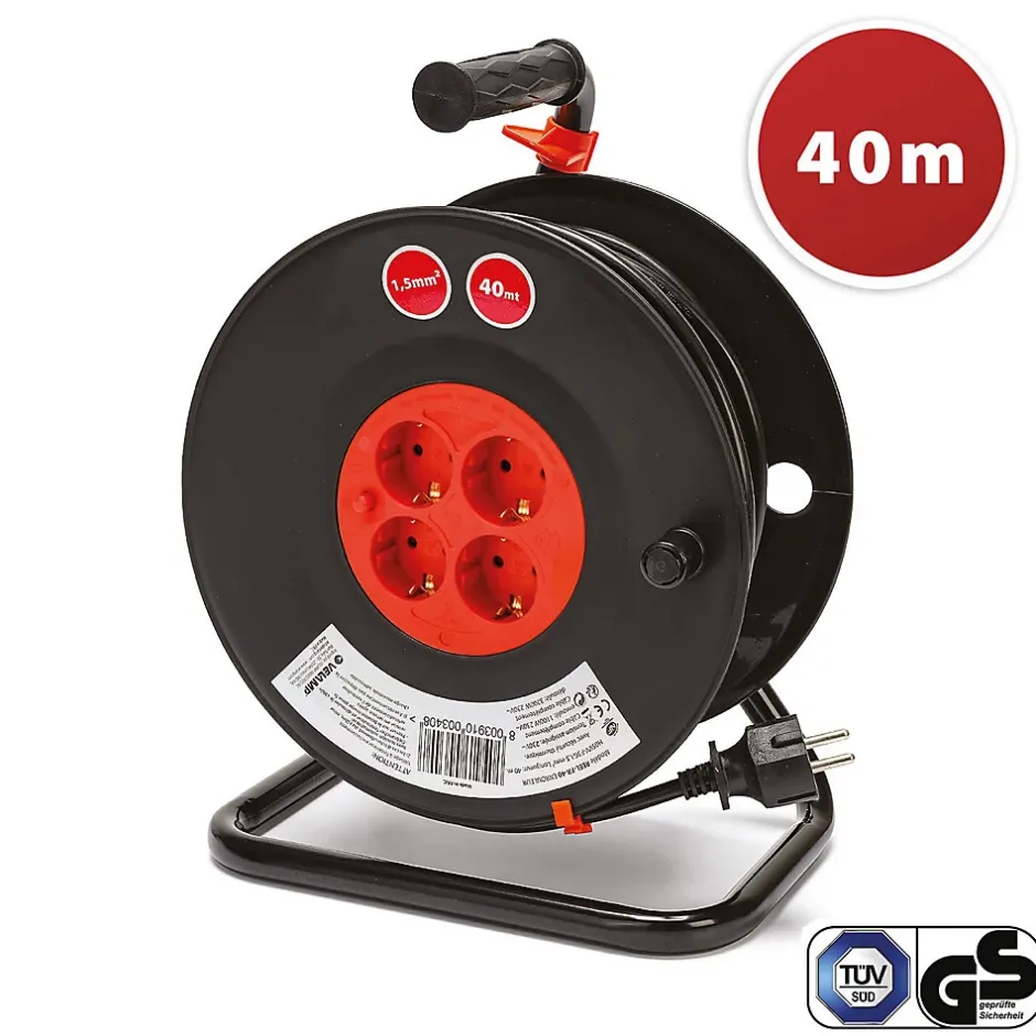 Idéal pour le bricolage et l’usage domestique.Câble de 40m, en PVC H05VV-F 3G1,5 m. Protecteur de sécurité : débranchez l’alimentation lorsque la puissance dépasse la limite de portée.Avec interrupteur thermique, poignée de rembobinage rotative. Puissance maximale : enroulé : 1100W, déroulé : 3200W.Prises et fiches Schuko standard : fiches et prises de type E. Toutes les prises sont équipées d’une sécurité enfants – cela empêche l’introduction de corps étrangers dans la prise sous tension.Certificat GS. IP20. Enrouleur de câble destiné à être utilisé dans les pays utilisant la norme électrique allemande : Allemagne, Autriche, Scandinavie, Balkans, Espagne, Portugal, Pays-Bas….