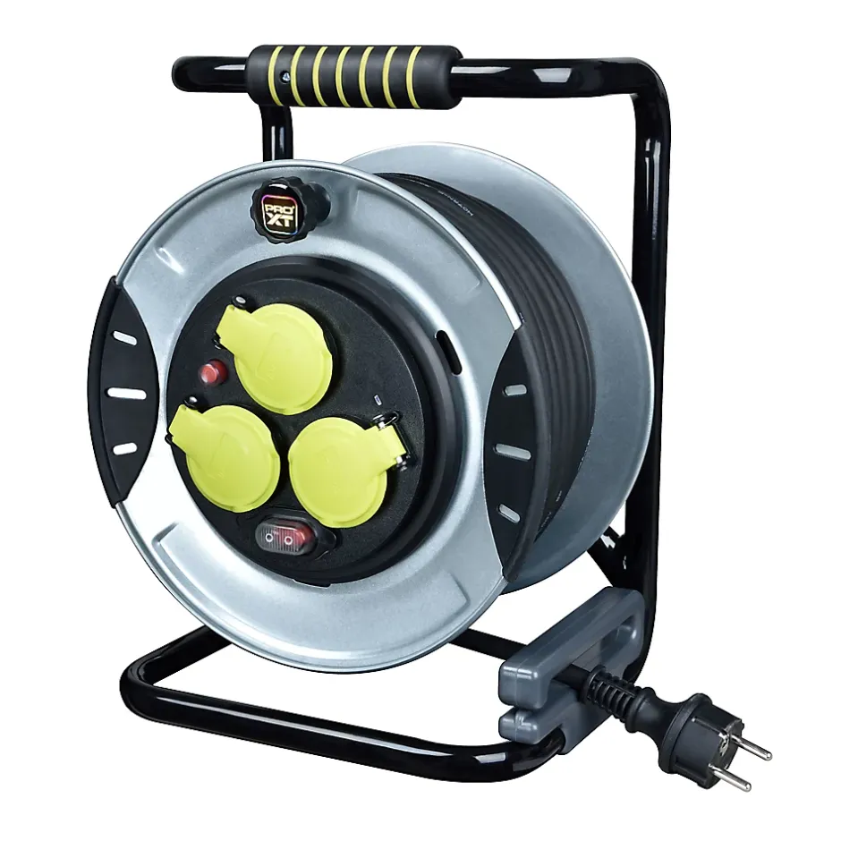 Enrouleur de chantier Diall H07RNF 3G1 5mm², 25m, ProXT, incluant : cache-prises sur interrupteur de prise.