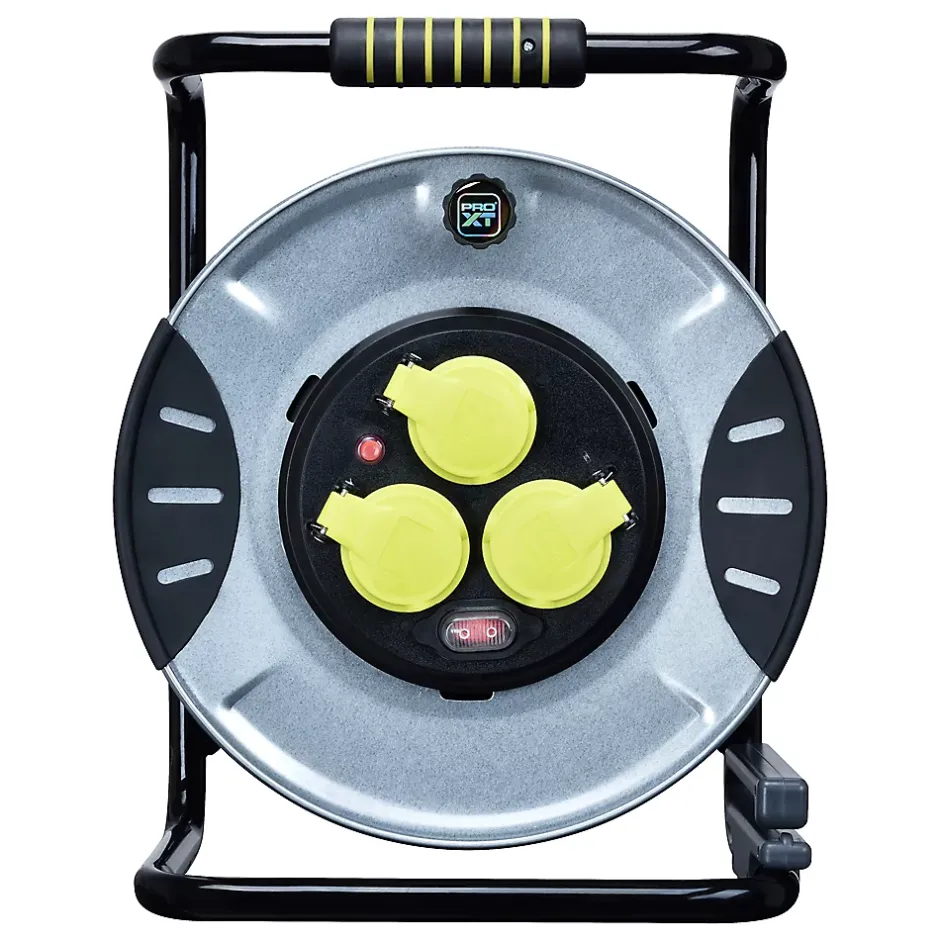 Enrouleur de chantier Diall H07RNF 3G2 5mm², 30m, ProXT, incluant cache-prises sur interrupteur de prise.