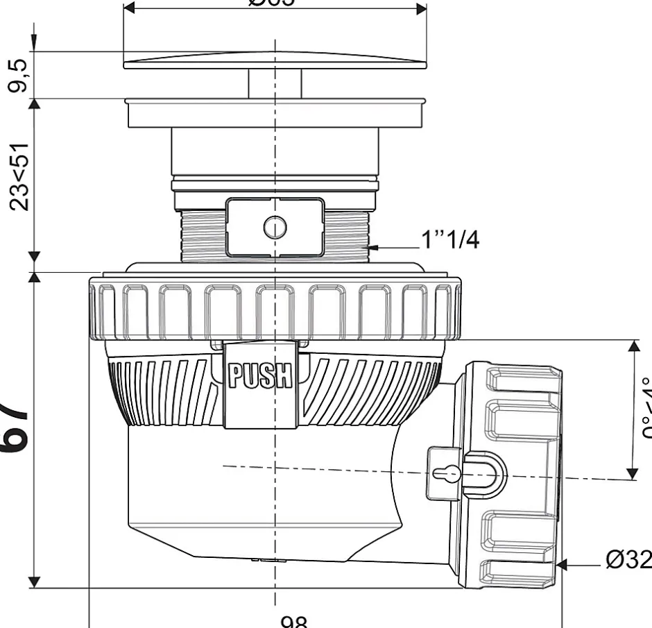 Ensemble bonde et siphon de lavabo Wirquin Nano 6.7 Sortie Ø32 mm – 1/4 de tour