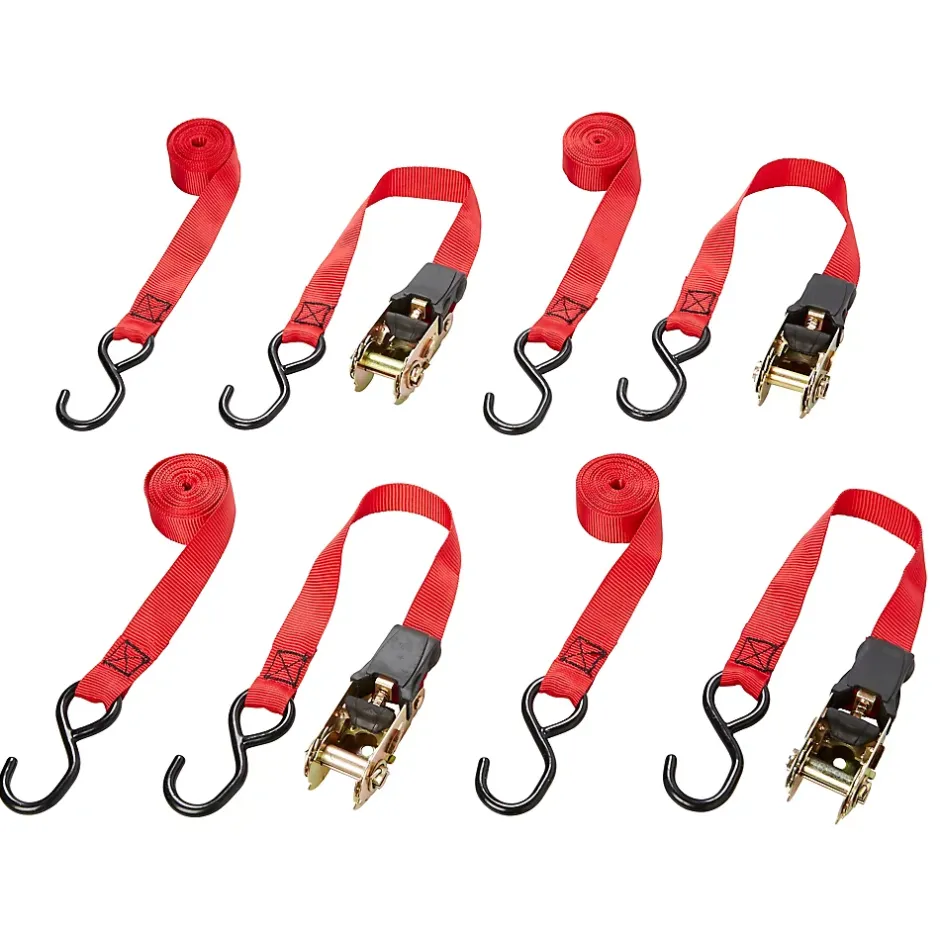 Ensemble de 4 sangles à cliquet + crochets Diall capacité 130 kg coloris rouge L.300 x l.2,5 cm
