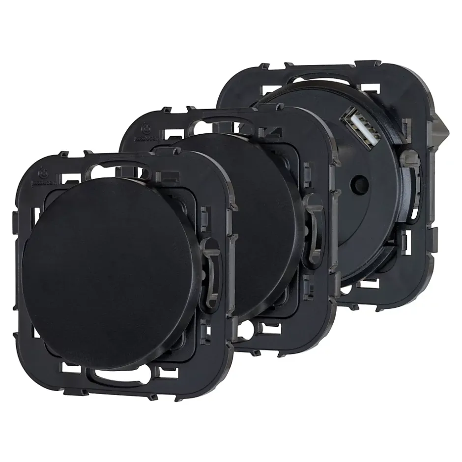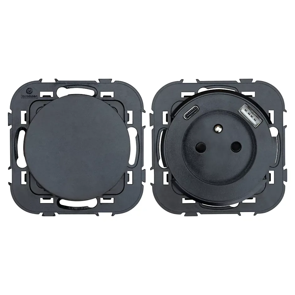Ensemble double interrupteur + 1 prise avec terre affleurante + 1 prise USB-A+C Jacobsen Espen noir composable