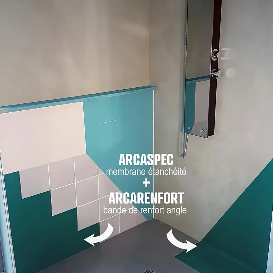 Ce Kit douche à l’italienne révolutionnaire est un système complet composé d’une résine d’étanchéité liquide prête à l’emploi. Arcaspec avec la bande de renfort pour les angles Arcarenfort permettant de réaliser une étanchéité parfaite sous carrelage, sous béton ciré, sous galets, sur BA13 hydro.Membrane étanche, élastique et ultra résistante à la fissuration.CONSOMMATIONDeux couches minimum sont indispensables pour une bonne imperméabilisation : 1 kg par m² au total (sous-couche d’accroche comprise).Il est primordial de respecter ces consommations minimum et pour ce faire, ne pas hésiter à rajouter une troisième couche.Le kit de 5m² comprend:5kg ARCASPEC + 1x bande de renfort: ARCARENFORT 10cm x 10mLe kit de 15m² comprend:15kg ARCASPEC + 2x bandes de renfort : ARCARENFORT 10cm sur 10mApplication : En tant que fabricant Français, nous mettons à disposition un document PDF disponible en bas de page vous indiquant les informations produits ainsi que les consignes d’application.La plateforme ne permet pas encore le regroupement des différents modèles. Pour voir toutes les contenances et toutes les couleurs, tapez ou copier-coller les termes suivants dans la barre de recherche : étanchéité douche salle de bain sous carrelage et béton ciré kit