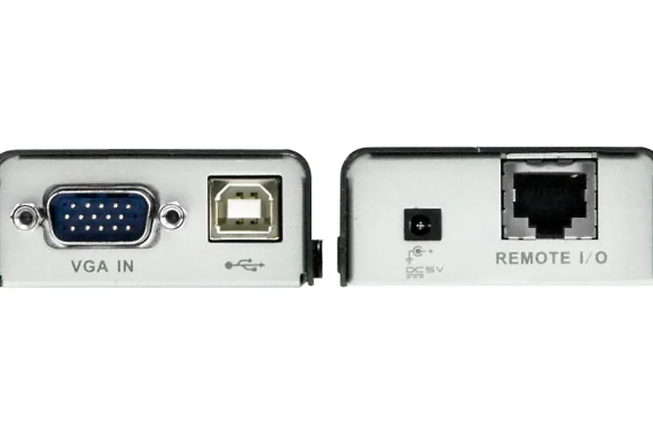 Le kit CE100 d’ATEN est composé d’un émetteur et d’un récepteur à relier par un cable RJ45.- Il permet d’étendre la liaison entre la console Clavier-Ecran-Souris VGA-USB et un ordinateur jusqu’à 100m.Spécifications :- Résolution maximale 1920 x 1200 (30m) – 1280×1024 (100m)- Système d’ajustement manuel du gain selon la longueur de câble RJ45- Supporte les écrans CRT ou LCD en mode VGA, SVGA, SXGA, UXGA, WUXGA- Protocole supporté par l’écran raccordé à l’emetteur : DDC, DDC2, DDC2B- Boitier Emetteur- Câble fourni pour raccordement à l’ordinateur (VGA+USB) 1m- Auto alimenté par l’ordinateur (USB)- Dimension 90 x 55 x 24mm 160gr- Boitier Récepteurlivré avec 1 alimentation secteur 230V~5V DC- 1 Port VGA HD15 Femelle- 2 ports USB type A FemelleDimension 90 x 55 x 24mm 160gr- Compatible tous systèmes d’exploitation supportant l’USB, aucun logiciel à installer