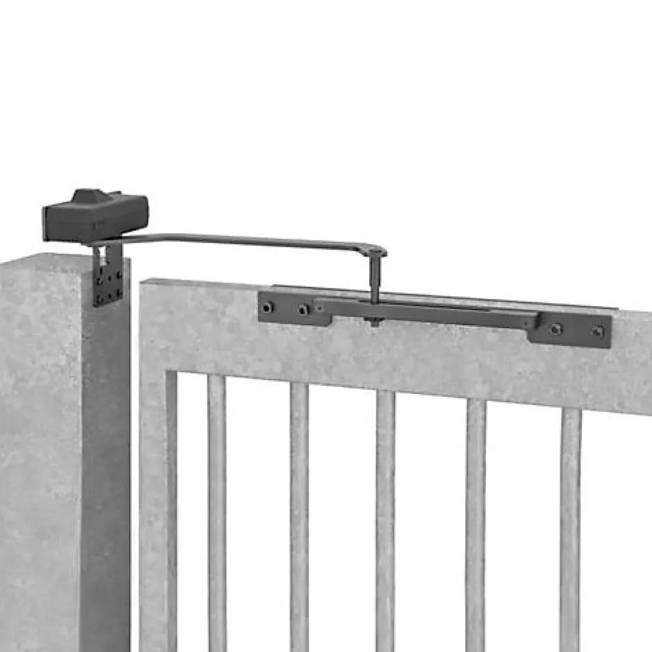 - Ferme-portail en applique conçu pour portails ajourés, installation simple.