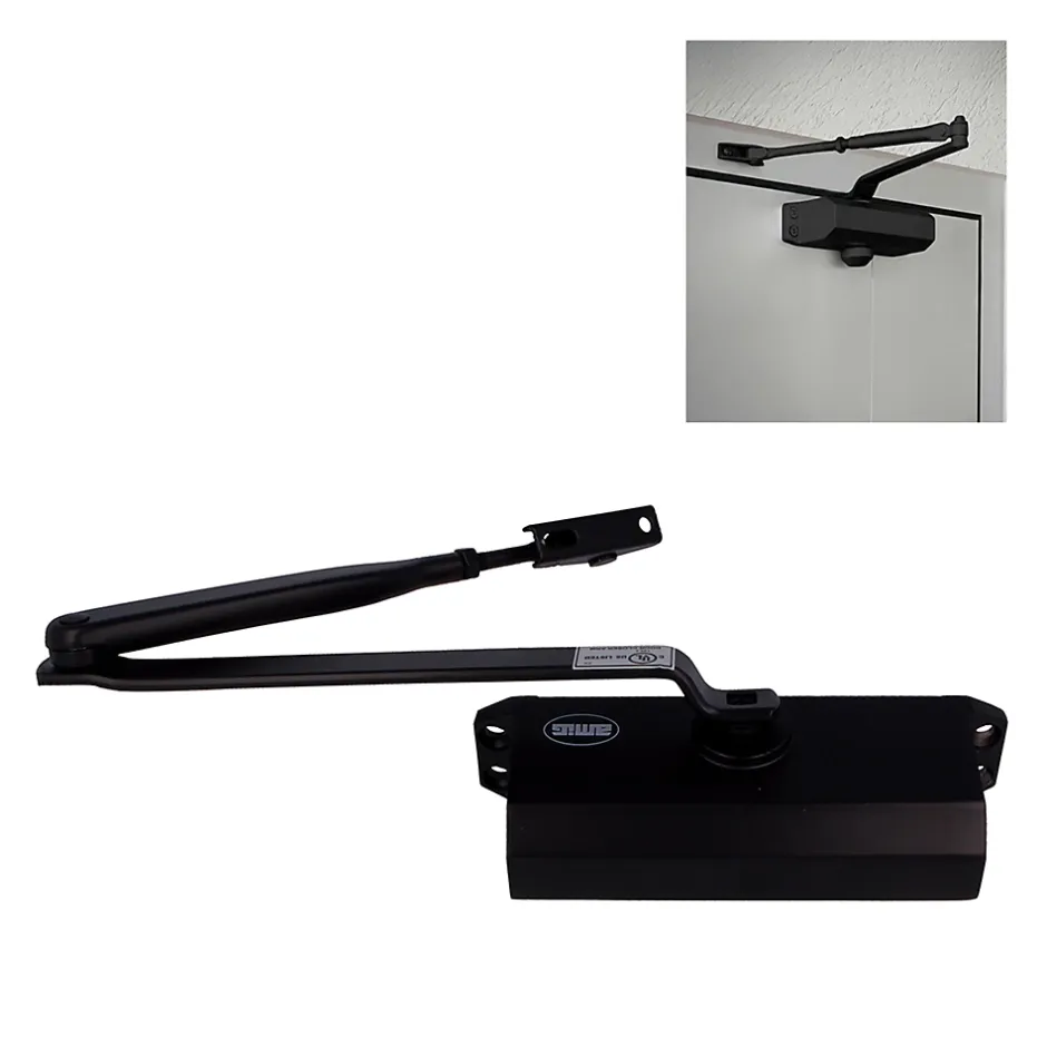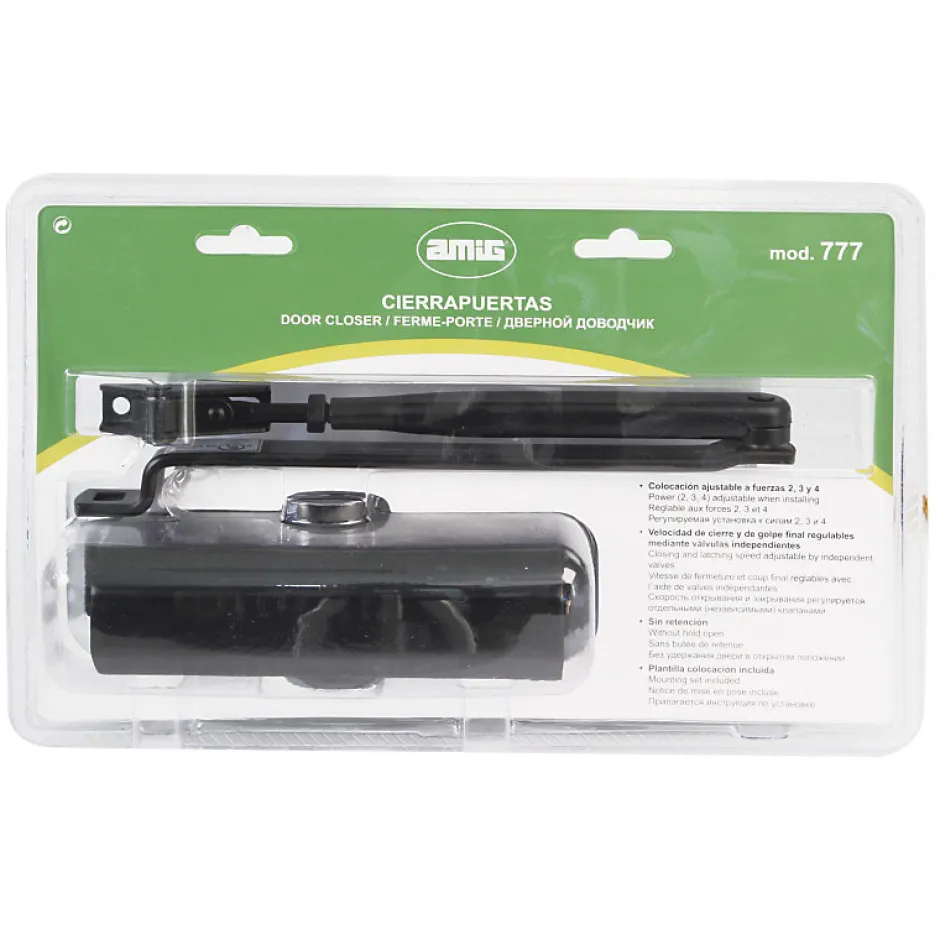 Ferme-porte multiforce réglable (2, 3, 4) lors du montage. Plaques pour portes en aluminium disponibles et vitesse de fermeture réglable. Notice de mise en pose incluse.