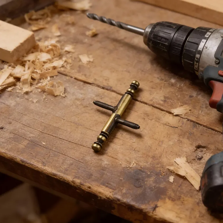 Fiche tourillon vieux laiton 8 x 56 mm.