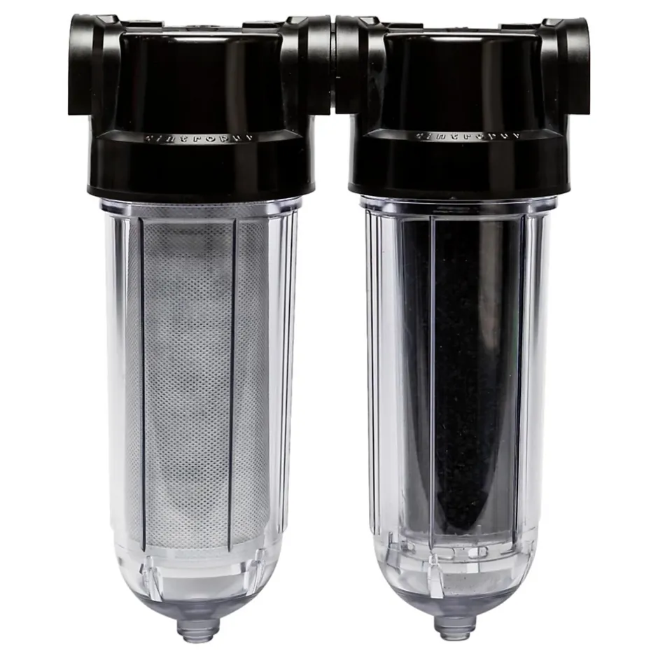 SL 240 Duo CTN 1″ – Filtre à compact CINTROPUR 25 micronsLe filtre CINTROPUR SL240 DUO CTN 1″ est conçu pour une filtration efficace et fiable de l’eau. Fabriqué entièrement en matière synthétique de qualité premium, il convient parfaitement à un usage domestique, pour le traitement de l’eau de réeau, de source, puits ou récupération de l’eau de pluie.Applications du filtre compact cintropur FWCCNW24DUOCTN1 :Le filtre centrifuge anti-sédiment 25µ Cintropur est conçu pour garantir une eau propre et saine dans vos installations. Sa filtration au charbon actif permet d’éliminer les goûts et les odeurs désagréables de l’eau. Le charbon actif permettra de filtrer l’eau du robinet du chlore, des pesticides et des métaux lourds, potentiellement présents dans votre eau de réseau.Grâce au mécanisme interne du filtre, le temps de contact entre l’eau et le charbon actif sera maximum, ce qui garantit une efficacité optimale du traitement.Traitement de l’eau de réeauTraitement eau de sourceTraitement eau de puits ou récupération de l’eau de pluieCaractéristiques techniques du filtre à eau compact cintropur :Seuil de filtration : 25 microns + charbon actifDébit max : 2,5 m³/hPression maximale : 12 barsTempérature maximale de l’eau : 50 °CRaccordement entrée / sortie : 1″ Matériaux : Polypropylène / SAN / NBR / Polyéthylène / PolyesterDimensions (L x l x H) : 144 x 260 x 366 mmVolume de traitement : 0,57 litresPays de fabrication : BelgiqueRéférence fabricant : FWCCNW24DUOCTN1 Installation et entretien du filtre à sédiment cintropur : Installation recommandée en entrée d’installation, après le compteurCompatible avec les réseaux domestiques standardsCartouche jetable, à remplacer périodiquement selon la qualité de l’eauRenouveler 2 à 3 fois par an le charbon actifFiltre équipé d’un système de purge facilitant le nettoyage du tamis