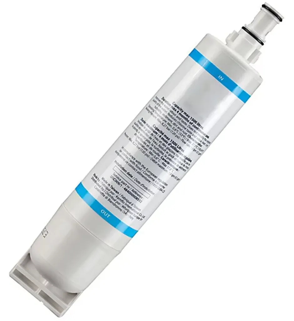 484000008726 Filtre à eau pour Réfrigérateur Américain Whirlpool SBS002 Diamètre : 5,1 cm Longueur : 25 cm Une eau pure parfaitement saine et des glacons translucides. Filtre à eau pour les réfrigérateurs américains Whirlpool. Le filtre à eau interne Wpro filtre réduit la teneur en chlore, les mauvaises odeurs et les impuretés de l’eau pour une meilleure hygiène. Filtre à eau interne simple à installer grâce à son système ¼ de tour, il se positionne directement à l’intérieur du réfrigérateur. À remplacer tous les 6 mois afin de conserver la capacité de filtration et garantir ainsi la qualité de l’eau du distributeur. Pièce détachée adaptable Whirlpool 481281729632 Toutes les pièces détachées Whirlpool