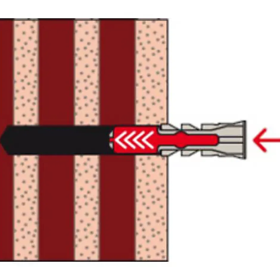 Cheville d’expansion fischer DUOPOWER 6 x 30 fournie avec vis Panhead TX, pack de 100 pièces. Conception bi-composant en nylon haute qualité : le composant gris active automatiquement le mode de fonctionnement optimal selon le matériau (s’expanse, se déploie ou forme un nœud) pour une tenue maximale, tandis que les composants rouges à ailes d’expansion apportent une sécurité supplémentaire dans les matériaux creux. Bord étroit pour éviter le glissement lors de l’insertion, système anti-rotation pour empêcher la cheville de tourner et rebord de tête qui empêche la chute dans le trou de perçage. Idéale pour supports TV, lampes, étagères murales, armoires de toilette, boîtes aux lettres, cadres, tringles à rideaux, lavabos, éléments de chauffage et sanitaire, ainsi que pour fixation en béton, briques pleines, briques perforées, béton cellulaire et plaques de plâtre. Garantie fabricant 2 ans, matériau : nylon, quantité : 100 pièces.