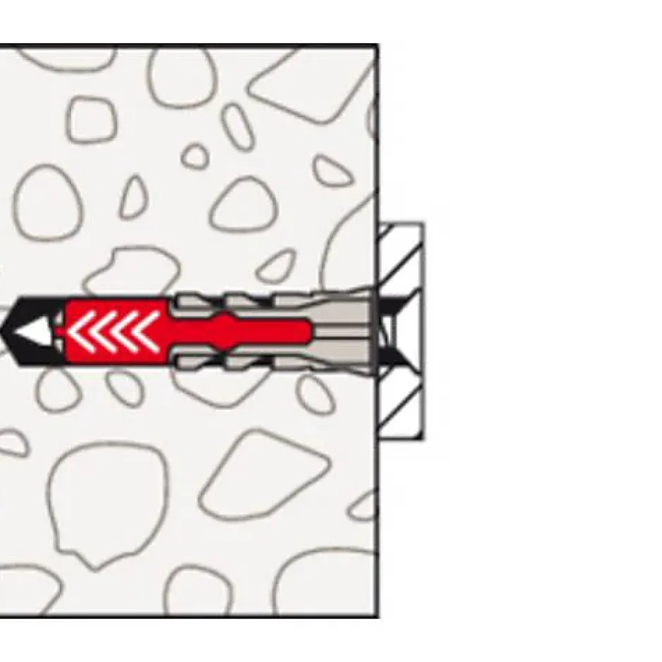 Cheville fischer DUOPOWER 6 x 30 avec vis Panhead TX, pack de 100 – système bi-composant qui adapte son mode de fonctionnement (expansion, déploiement, formation d’un nœud) selon le matériau, offrant une fixation fiable dans béton, briques, plaques de plâtre et béton cellulaire, avec protection anti-rotation et perception du couple facilitant le vissage.