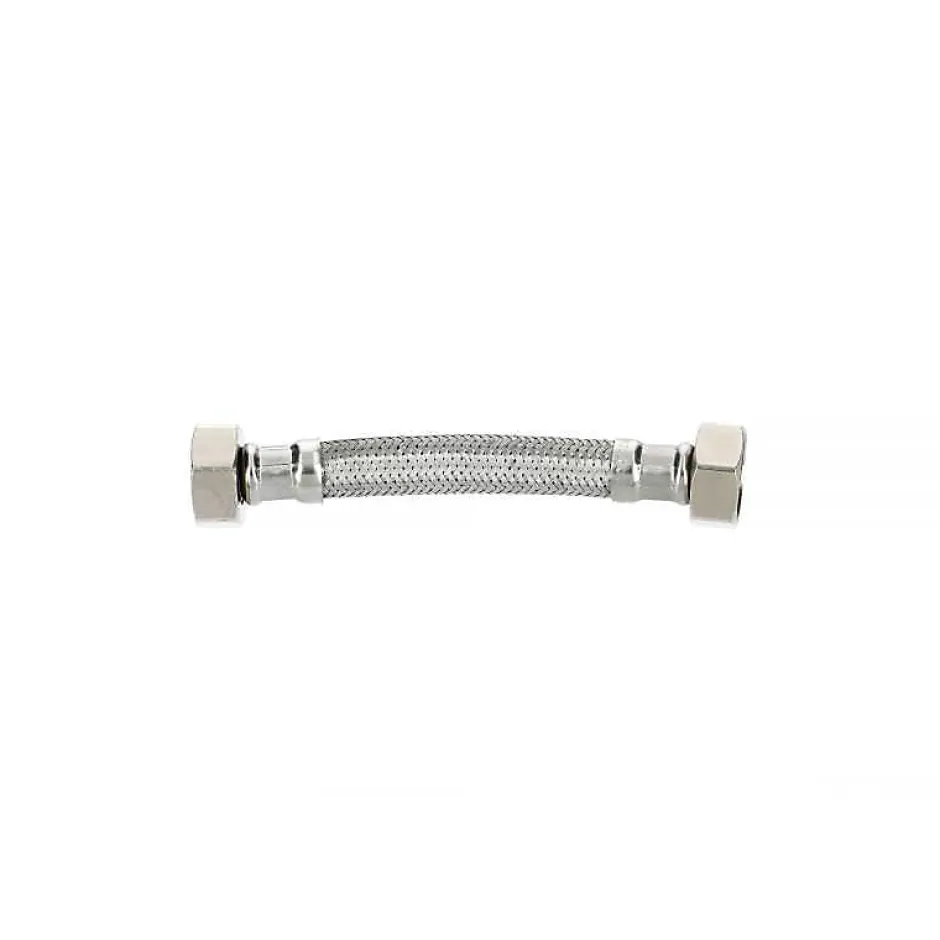 Flexible sanitaire double femelle.Caractéristiques techniques: Installation sur équipement sanitaire, robinet, chauffe-eau, lavabo et bidet (pour raccordements de 12/17 à 15/21) ou sur chauffe-eau, réservoir d’eau, ventilo-convecteur, climatisation et panneau solaire (pour raccordement 20/27)Température d’utilisation max: de 70 à 90°C selon modèlePression max: de 10 à 16 bar selon modèleDiamètre intérieur: de 8 à 13 mm selon modèleDiamètre extérieur: de 12 à 18 mm selon modèleFlexible intérieur en caoutchouc (EPDM)Tressage et embout métallique en acier inoxydable AISI 304Raccords en laitonRondelle en EPDM intégrée (sauf pour raccordement 20/27)Conformes aux normes ACSLes flexibles sanitaires GARIS sont garantis pendant 3 ans.