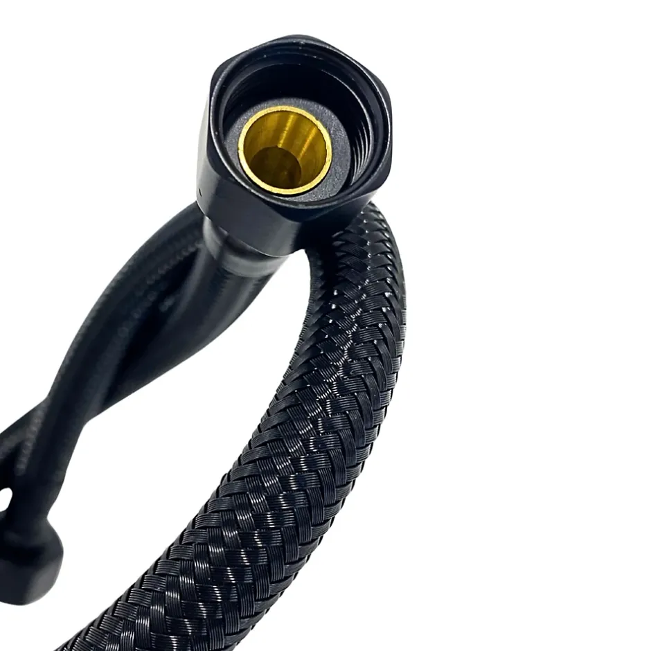 Données techniques Type : PEX Longueur : 60 cm Filetage : 1/2″ x 3/8″ Couleur de la gaine : Noir Température maximale de service : 95°C Pression de service maximale : 15 bar Pression d’éclatement : 35 barPourquoi le choisir ?Tuyau intérieur PEX – haute résistance à la température et à la pressionGaine en plastique noire – durabilité et apparence éléganteÉléments de raccordement en laiton – connexion stable et fiableJoints EPDM – étanchéité durable, sans fuitesSécurité au quotidienLe tuyau de raccordement est un élément constamment sous pression. Il est donc essentiel de choisir des matériaux qui conservent leurs propriétés pendant de nombreuses années. Le PEX et une gaine robuste garantissent une sécurité durable – sans risque de fuites soudaines.Fiabilité même dans des conditions exigeantesLes variations de température, les coups de bélier et l’usage quotidien font partie de la vie de toute installation d’eau. Ce tuyau a été conçu pour ces conditions – il reste étanche et flexible, même en cas d’utilisation intensive.Un détail adapté aux installations modernesLa gaine noire n’est pas seulement un atout esthétique, mais aussi une solution pratique. Elle s’harmonise parfaitement avec les robinetteries modernes et reste discrète même dans les zones visibles. Le choix idéal pour des intérieurs harmonieux et soignés.