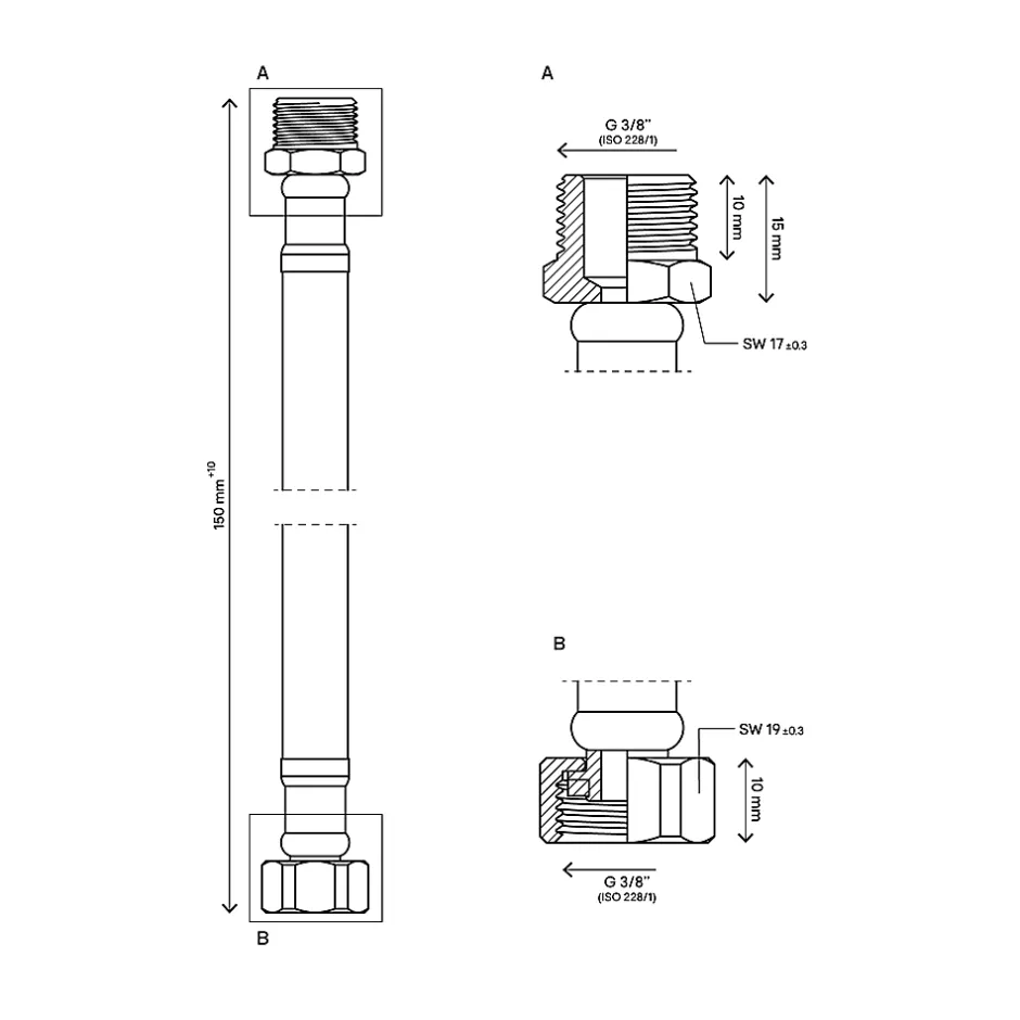 Flexible d’alimentation Flomasta Mâle/Femelle 12×17 longueur 15 cm