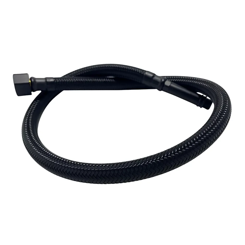 Données techniquesModèle : DN8 F3/8″ x M10Longueur : 40 cmDiamètre intérieur/extérieur : 8,5 mm / 11,3 mmFiletage 1 : 3/8″Filetage 2 : M10 (douille longue)Couleur : NoirTempérature maximale de service : 95°CPression de service maximale : 15 barPression d’éclatement : 35 barPourquoi le choisir ?Tuyau intérieur PEX – haute résistance à la température et à la pressionGaine plastique noire – durabilité et aspect moderneInsert en laiton et acier inoxydable AISI 304 – connexion stable et étancheJoints en silicone / EPDM – protection fiable contre les fuitesNorme de raccordement européenne – compatible avec la plupart des robinetteriesUn petit élément, une grande responsabilitéBien qu’il paraisse insignifiant, le flexible d’alimentation reste sous pression 24 heures sur 24. En choisissant un flexible PEX de haute qualité avec gaine protectrice, vous minimisez le risque de fuites soudaines et de dégâts coûteux dus à des inondations. C’est un choix conscient de sécurité – pour vous et votre maison.Une esthétique qui fait la différenceLa gaine noire s’accorde parfaitement avec les robinetteries modernes et les installations de style loft ou industriel. Un détail visible sous le lavabo ou l’évier qui fait vraiment la différence. Fonctionnalité et design vont ici de pair.Technologie PEX – durabilité à long termeLe tuyau intérieur en PEX offre une excellente résistance à la chaleur, à la pression et au vieillissement du matériau. Même après des années d’utilisation, il reste flexible et étanche. Une solution éprouvée pour la salle de bains comme pour la cuisine.
